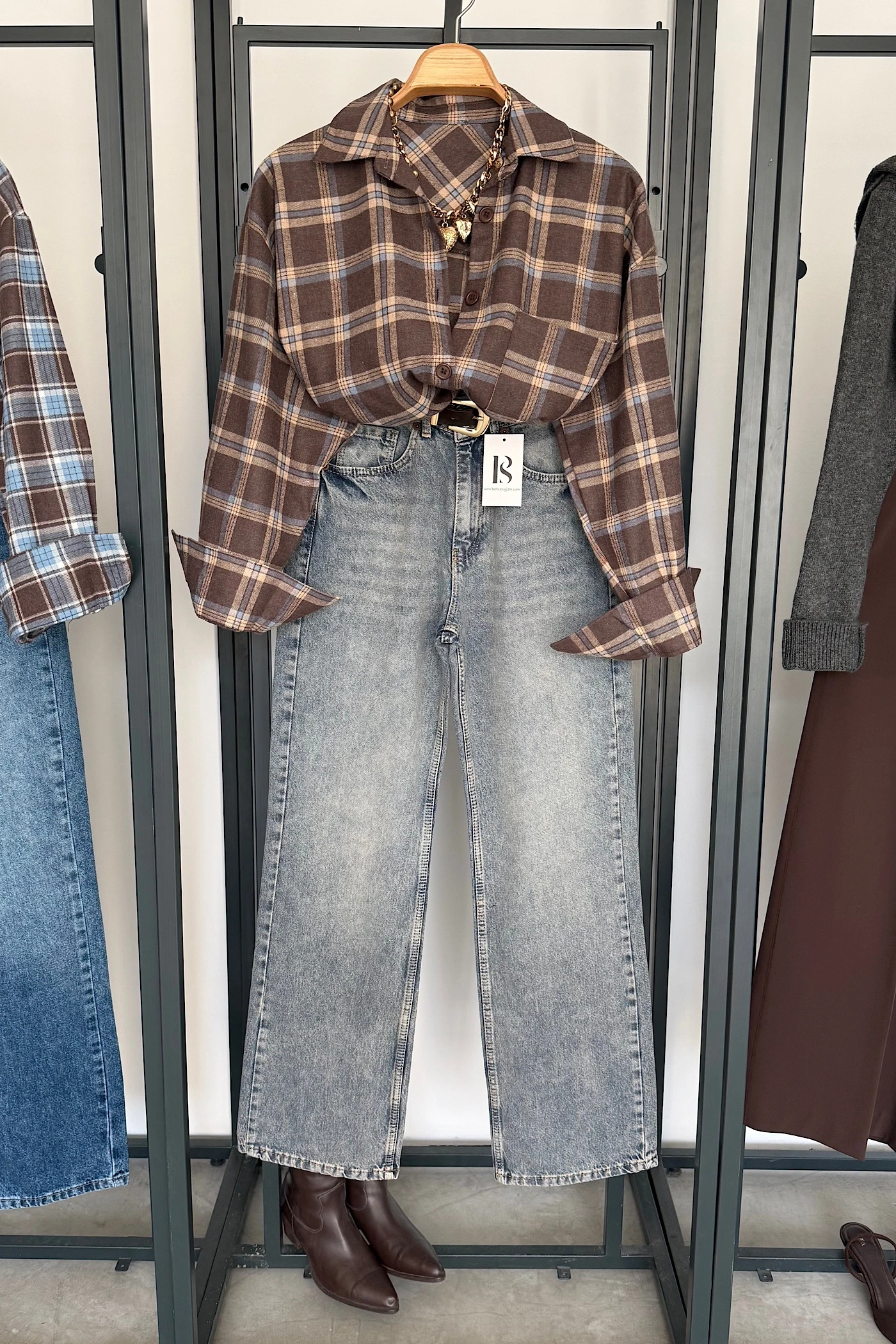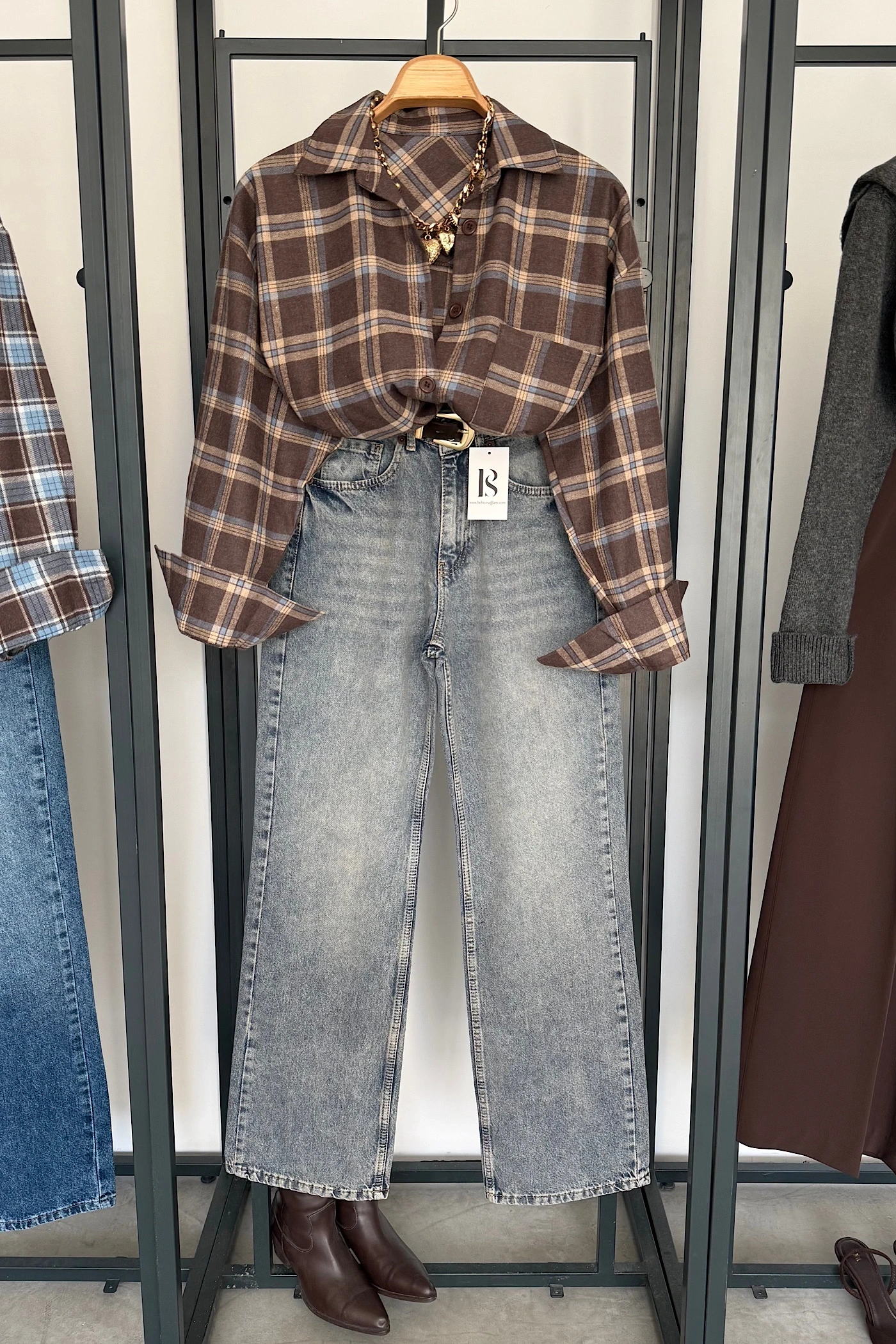 Yumuşak Dokulu Bisiklet Yaka Kazak Kahverengi