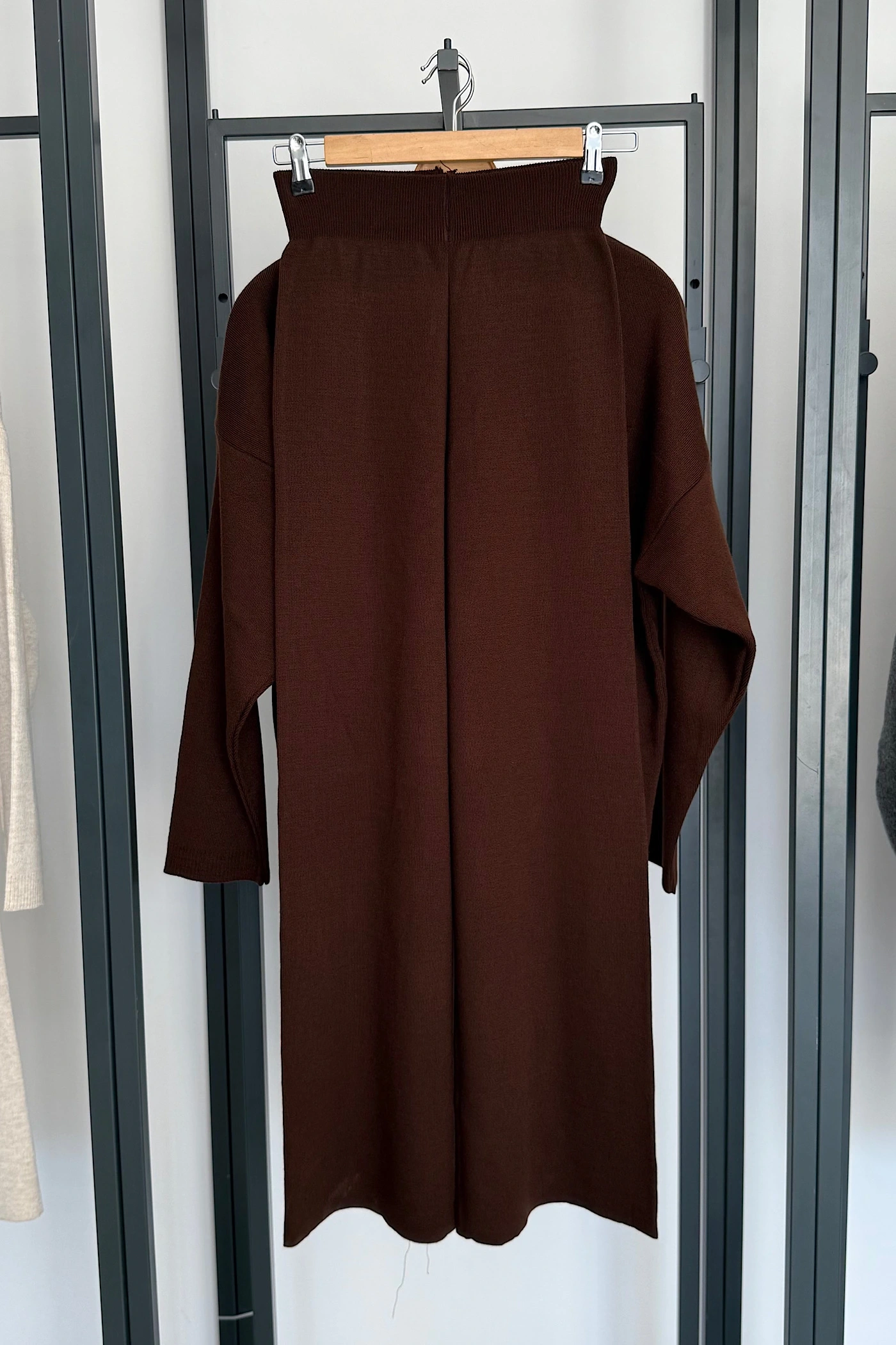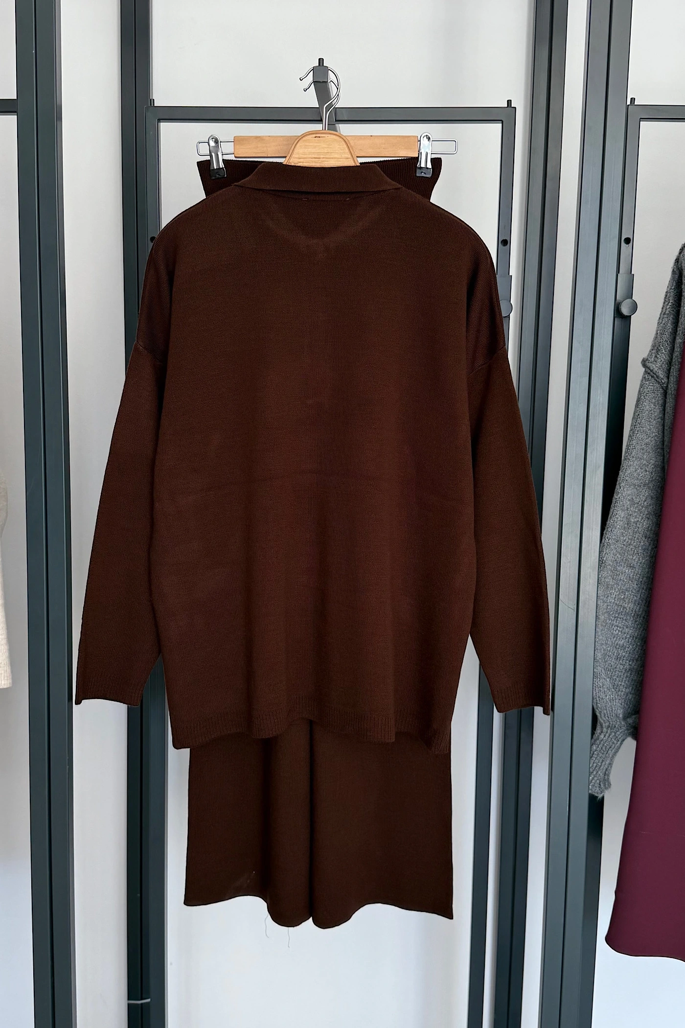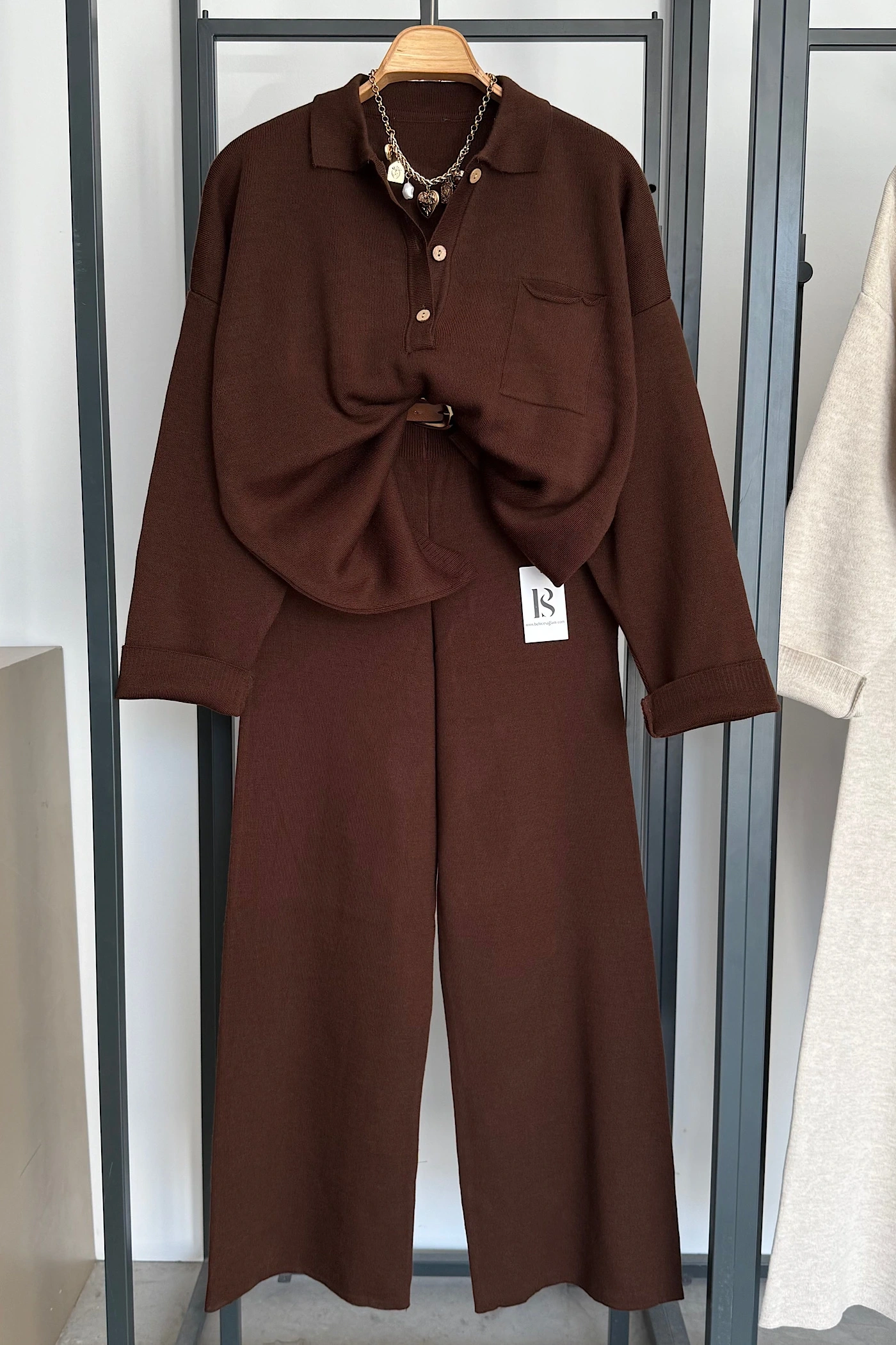 Kolsuz Süveter Pileli Pantolon Takım Kahverengi