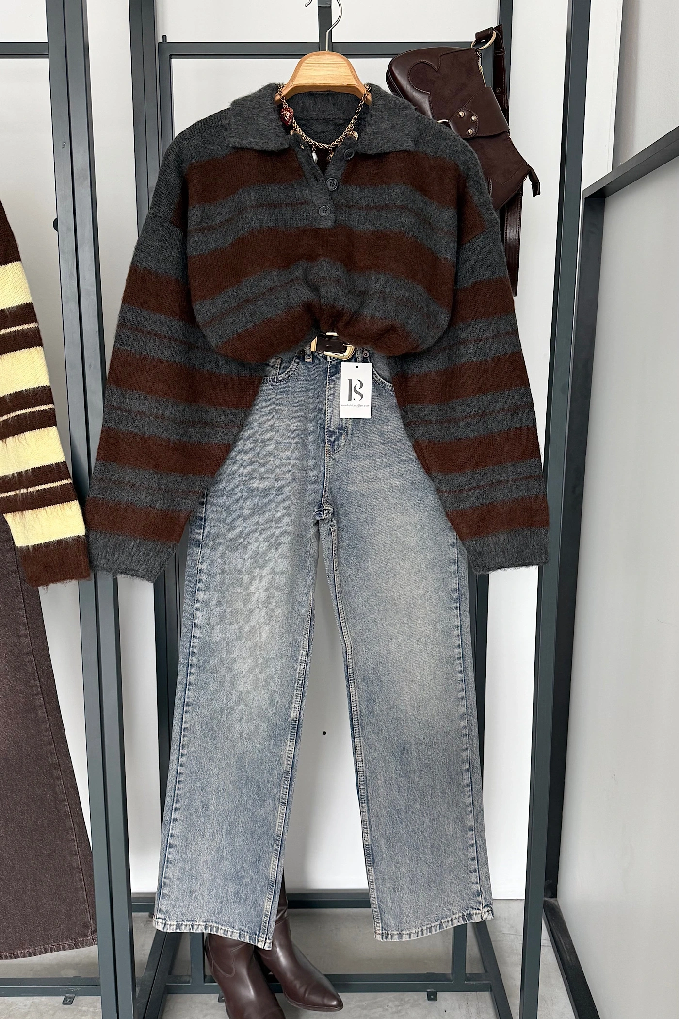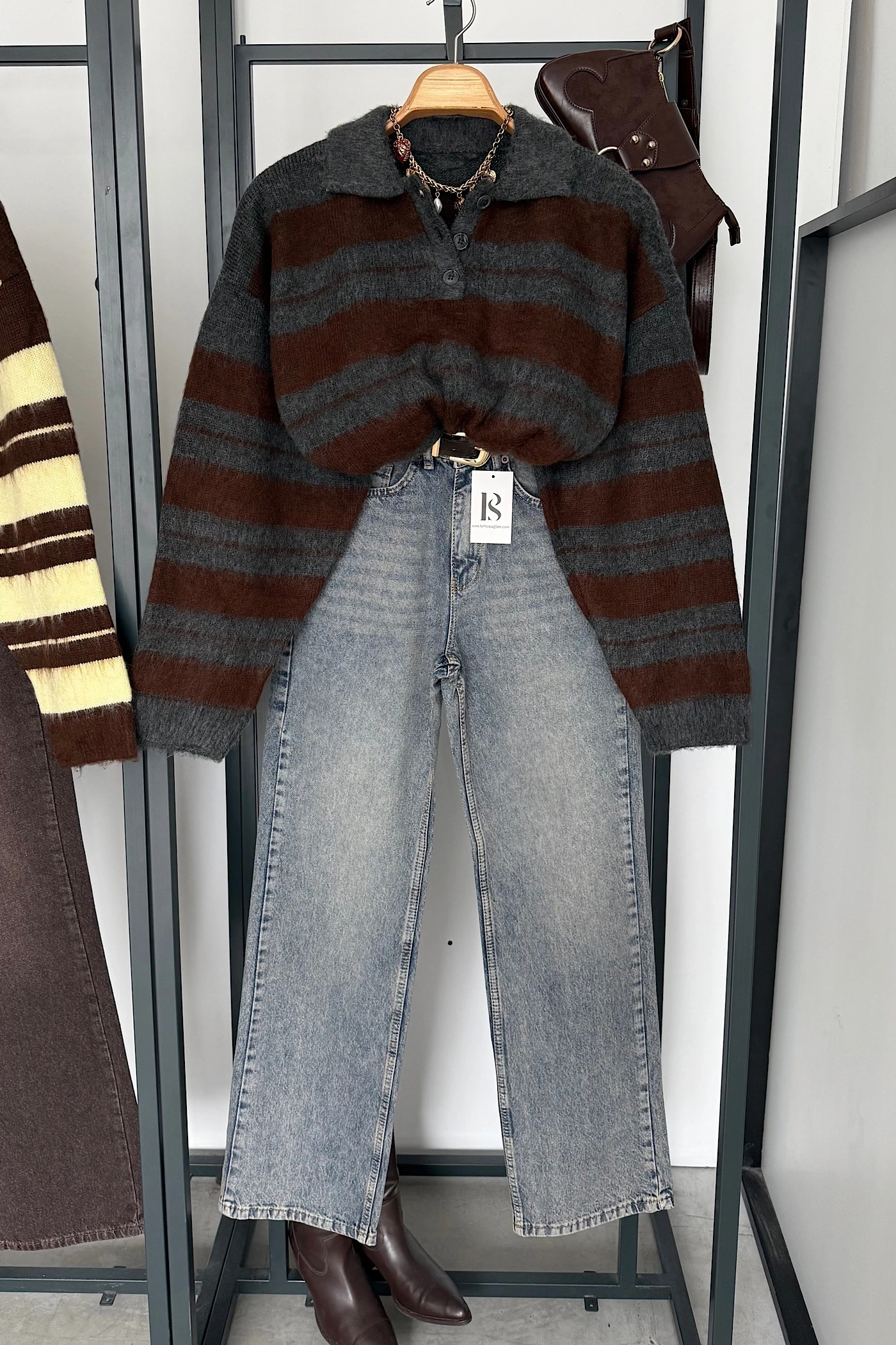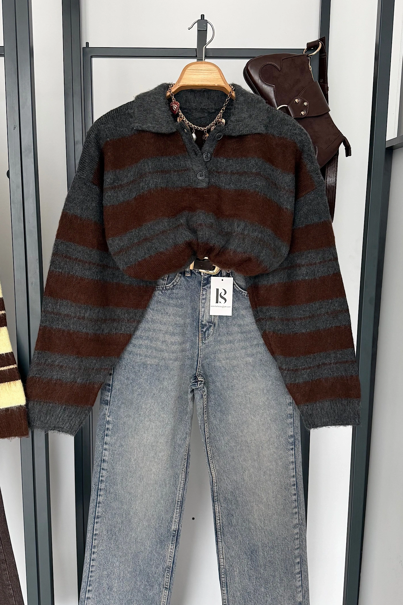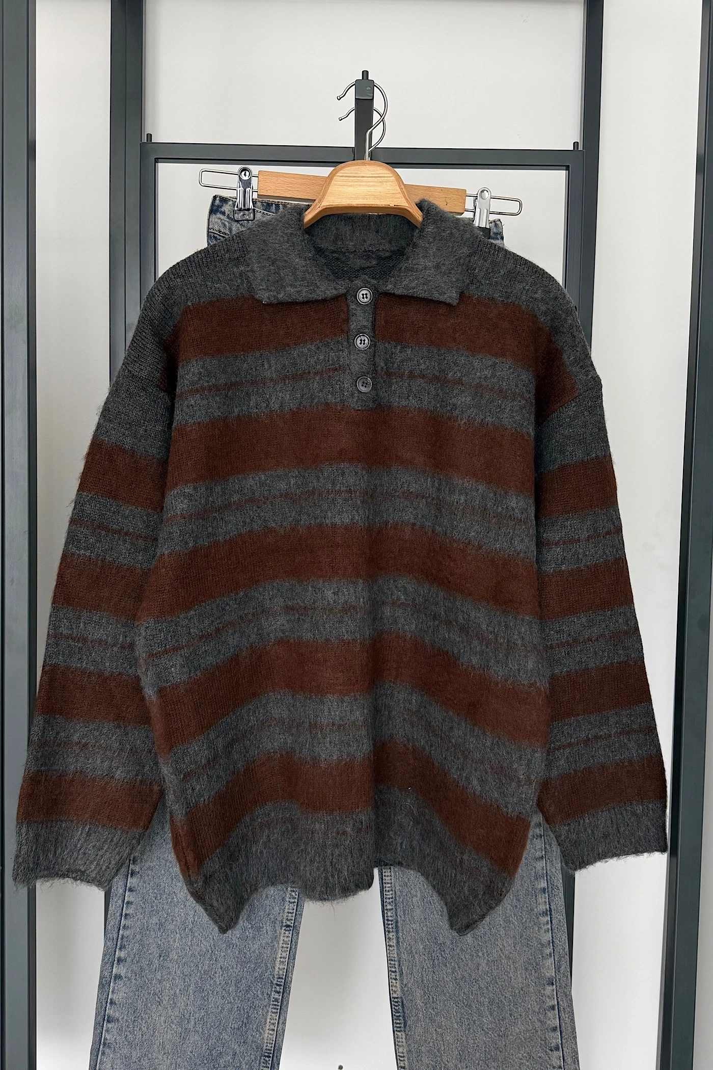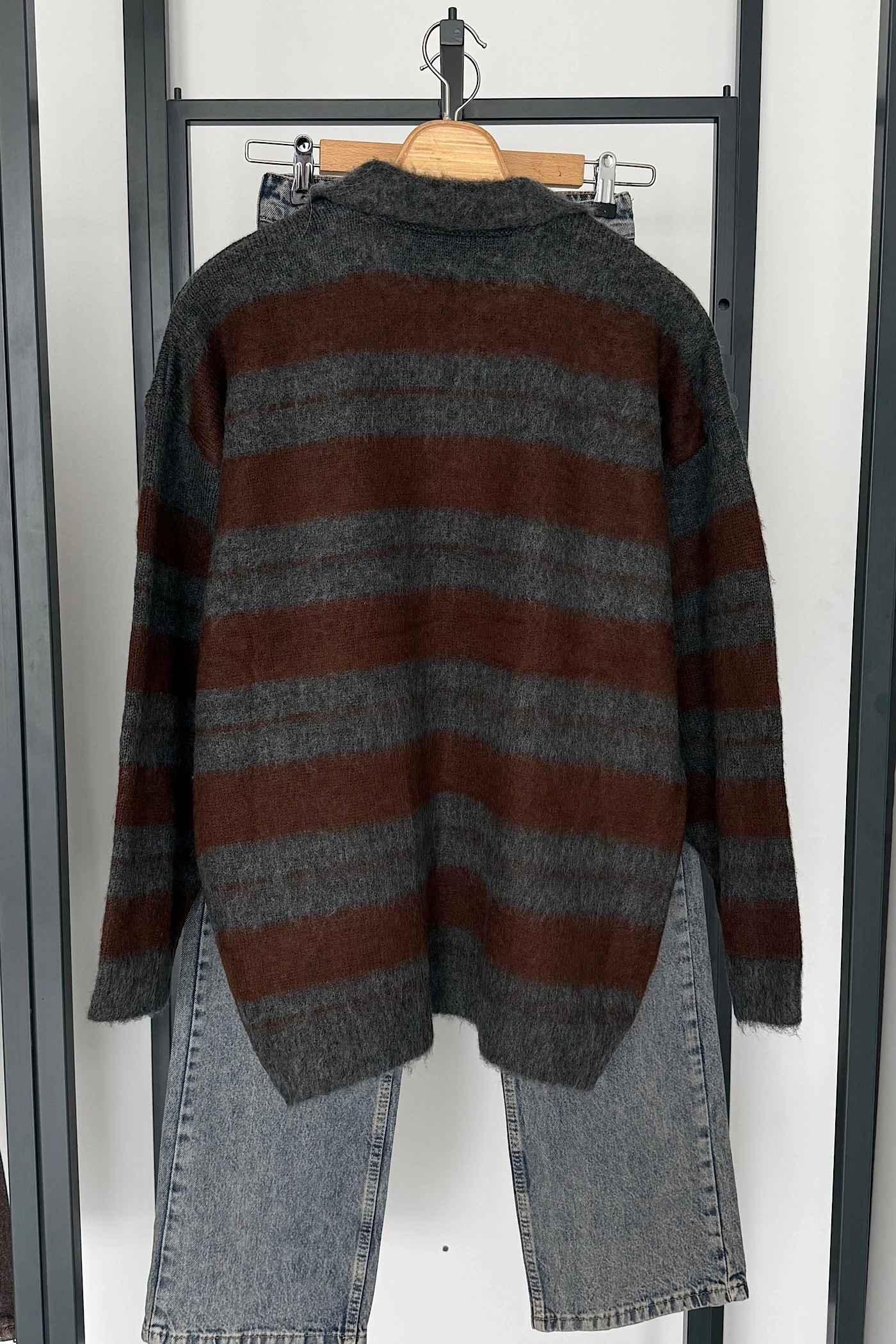 Sakallı Çizgili Kazak Antrasit-Kahve