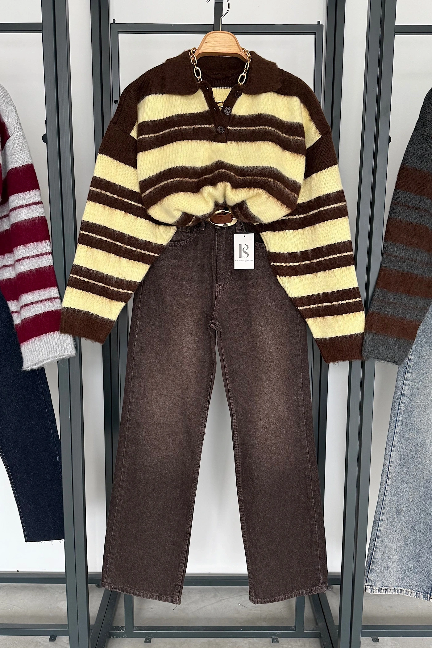 Ekstra Geniş Paça Ayarlanabilir Pantolon Kahverengi