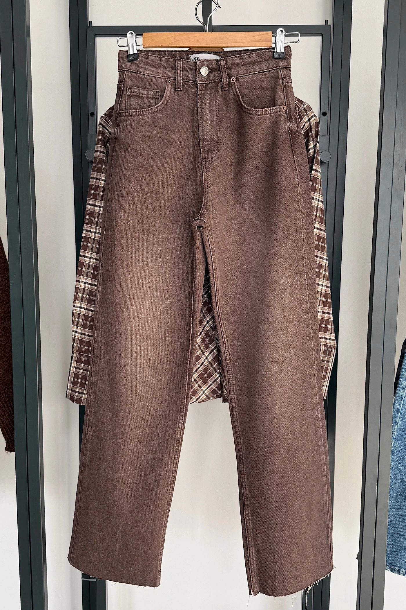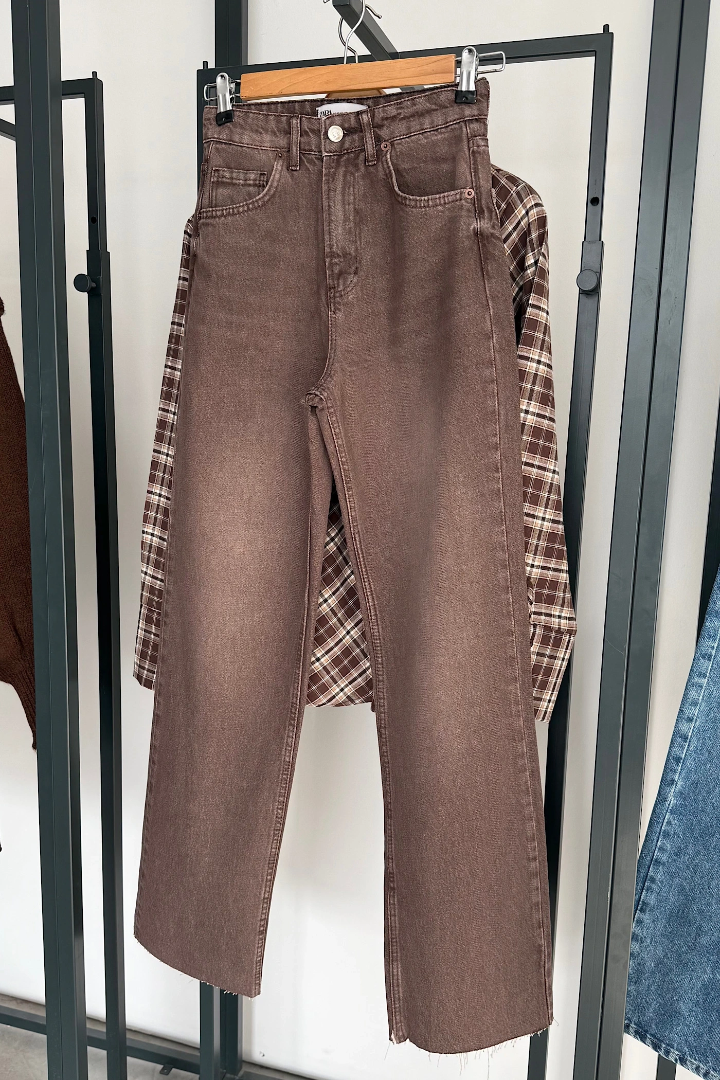 Straight Fit Vintage Görünümlü Kesik Paça Jean Kahverengi