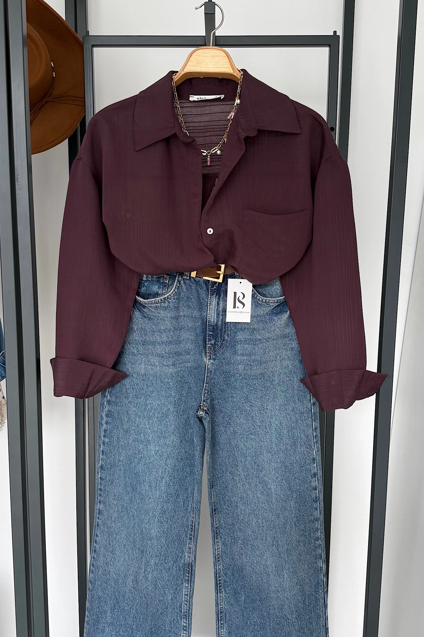 Balon Kol Dökümlü Gömlek Bordo