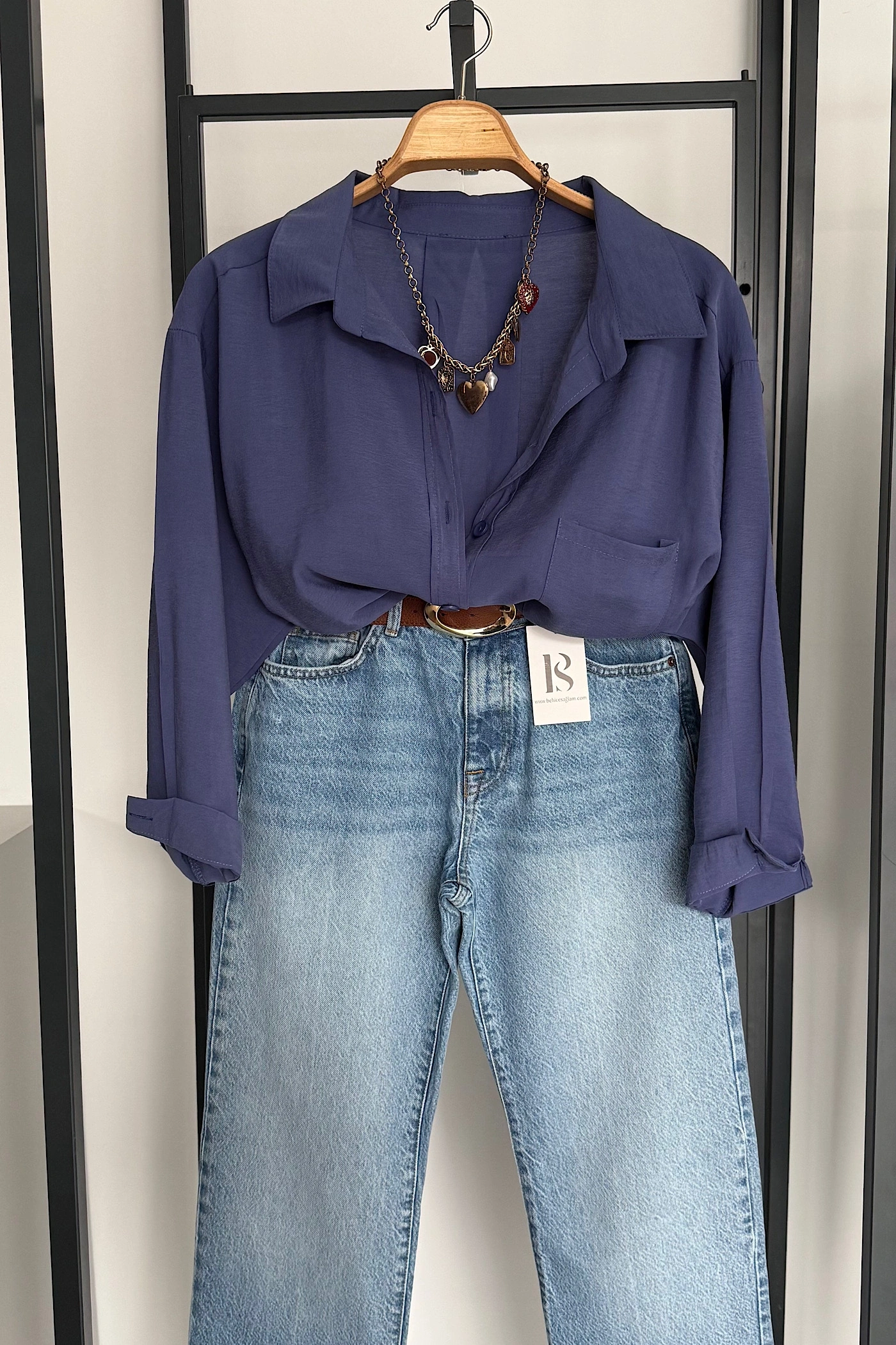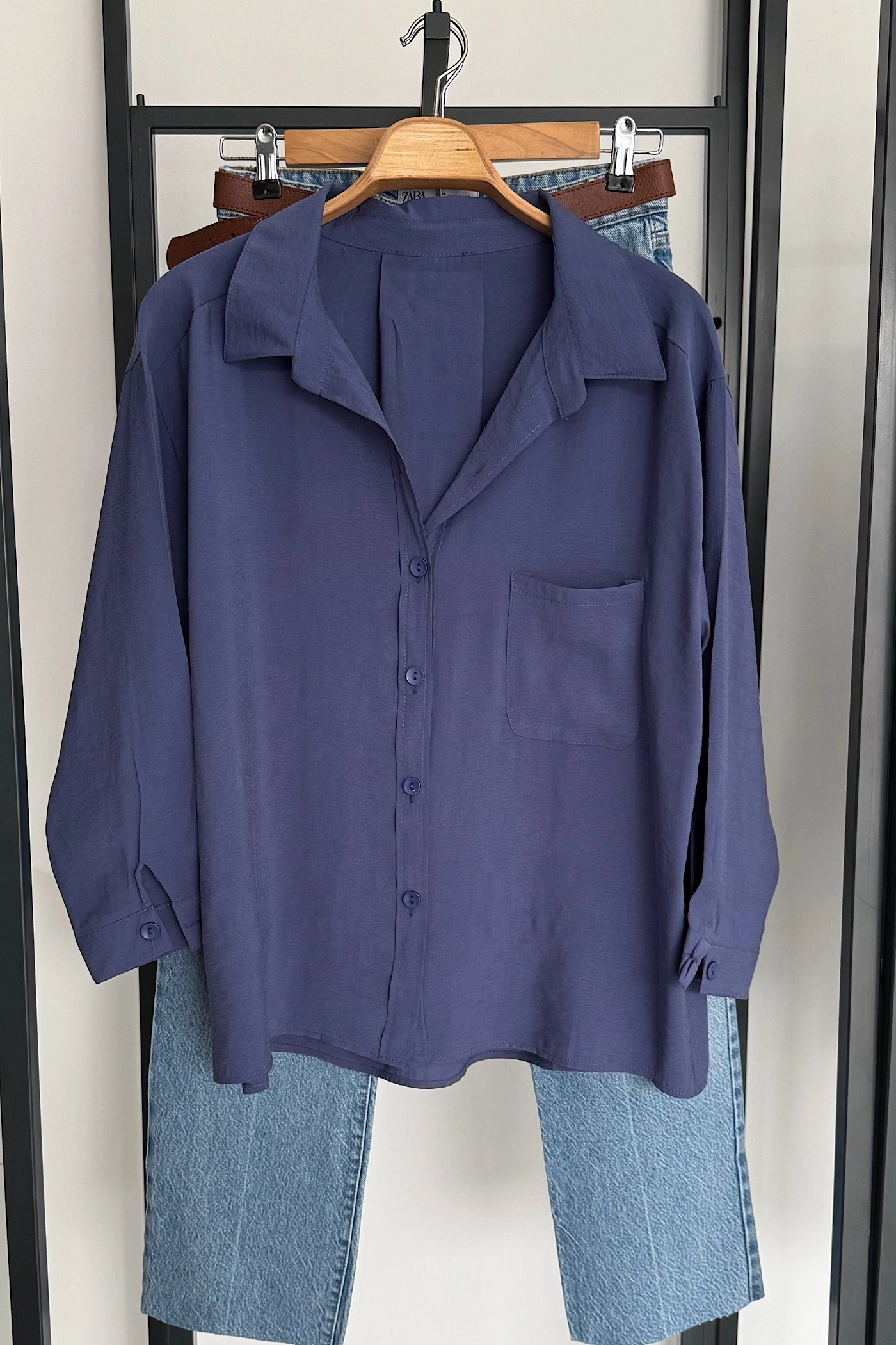 Bs Tek Cepli Dokumalı Gömlek Lacivert