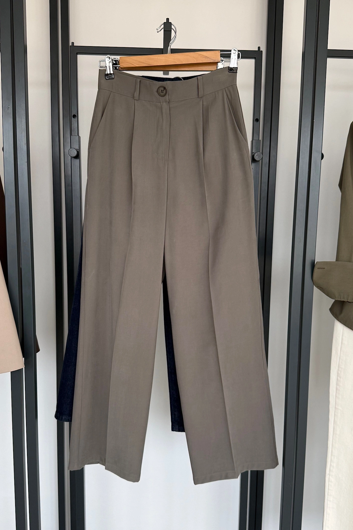 Kendinden Şal Detaylı Şalvar Pantolon Haki