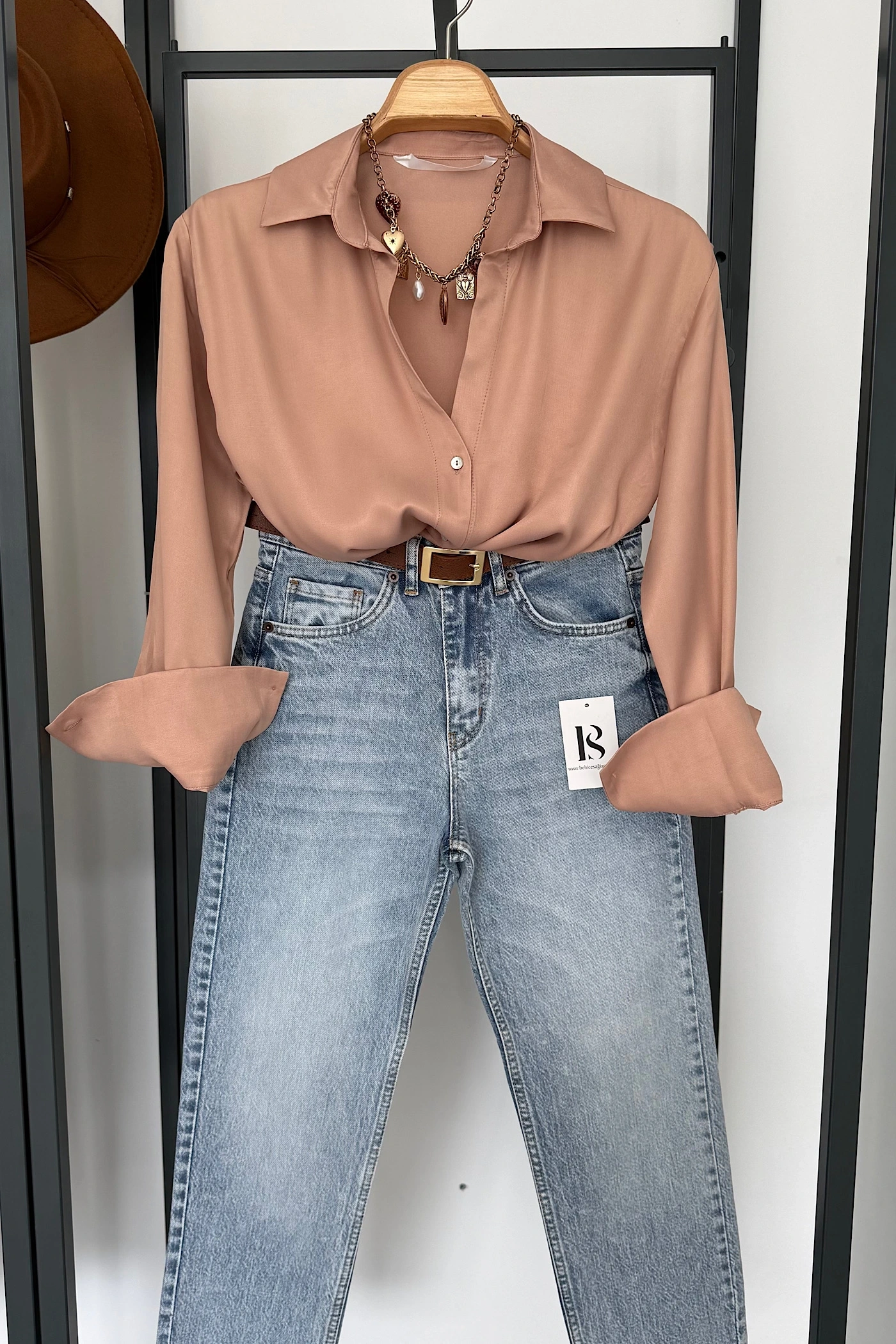 Baklava Desen Madonna Yaka Kazak Kahverengi