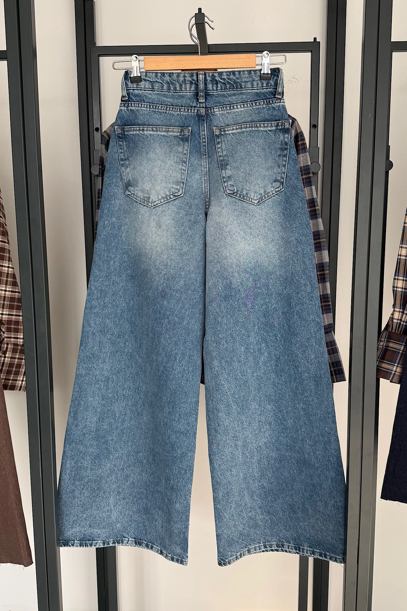 Straight Fit Vintage Görünümlü Jean Koyu Mavi