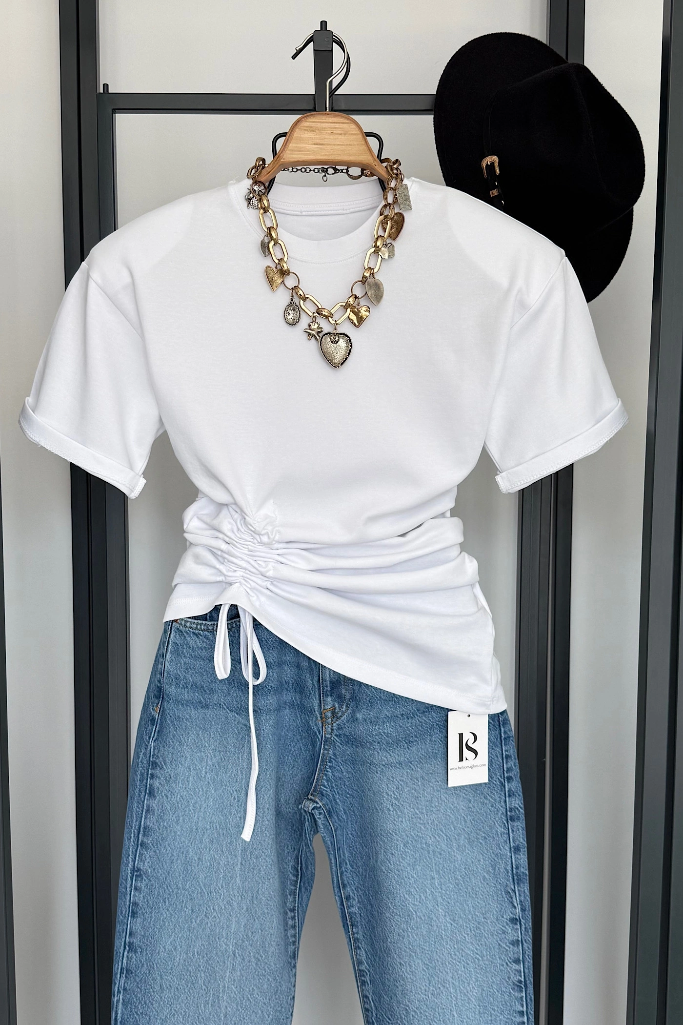 Yandan Büzgülü Bluz Beyaz