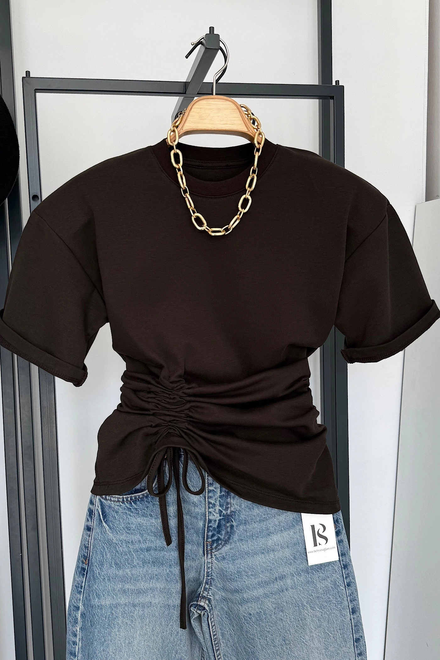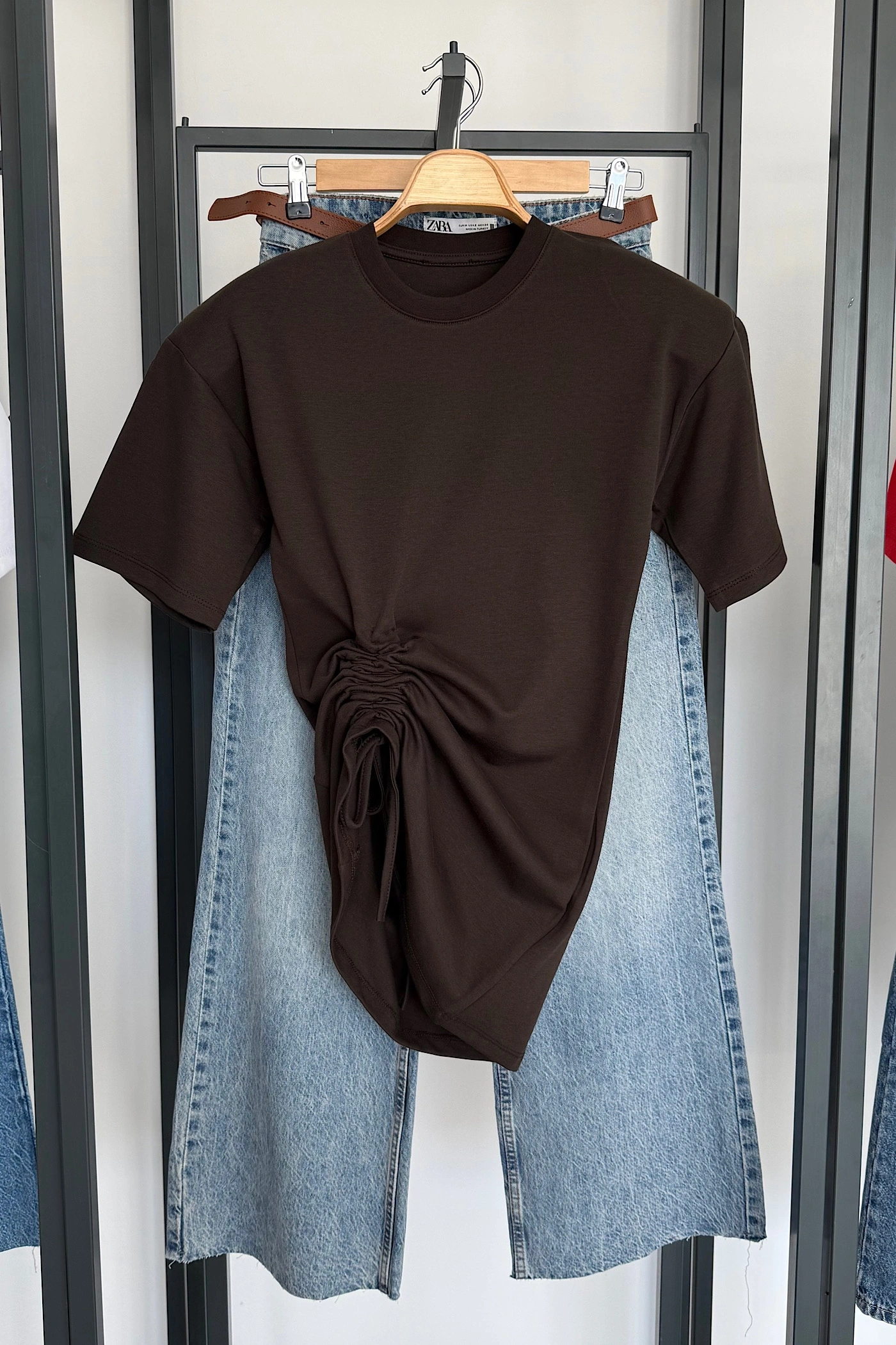 Dökümlü Tensel Oversize Gömlek Kahverengi