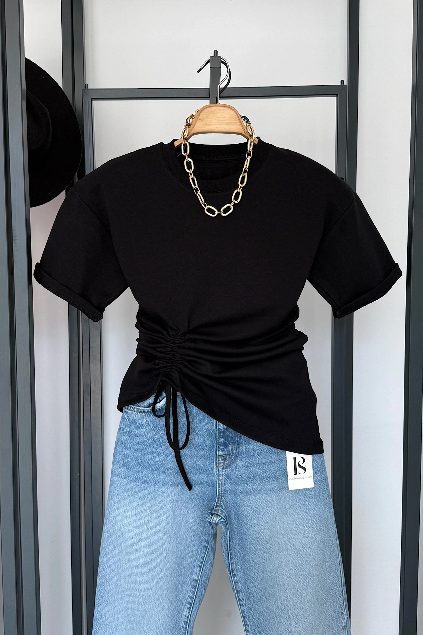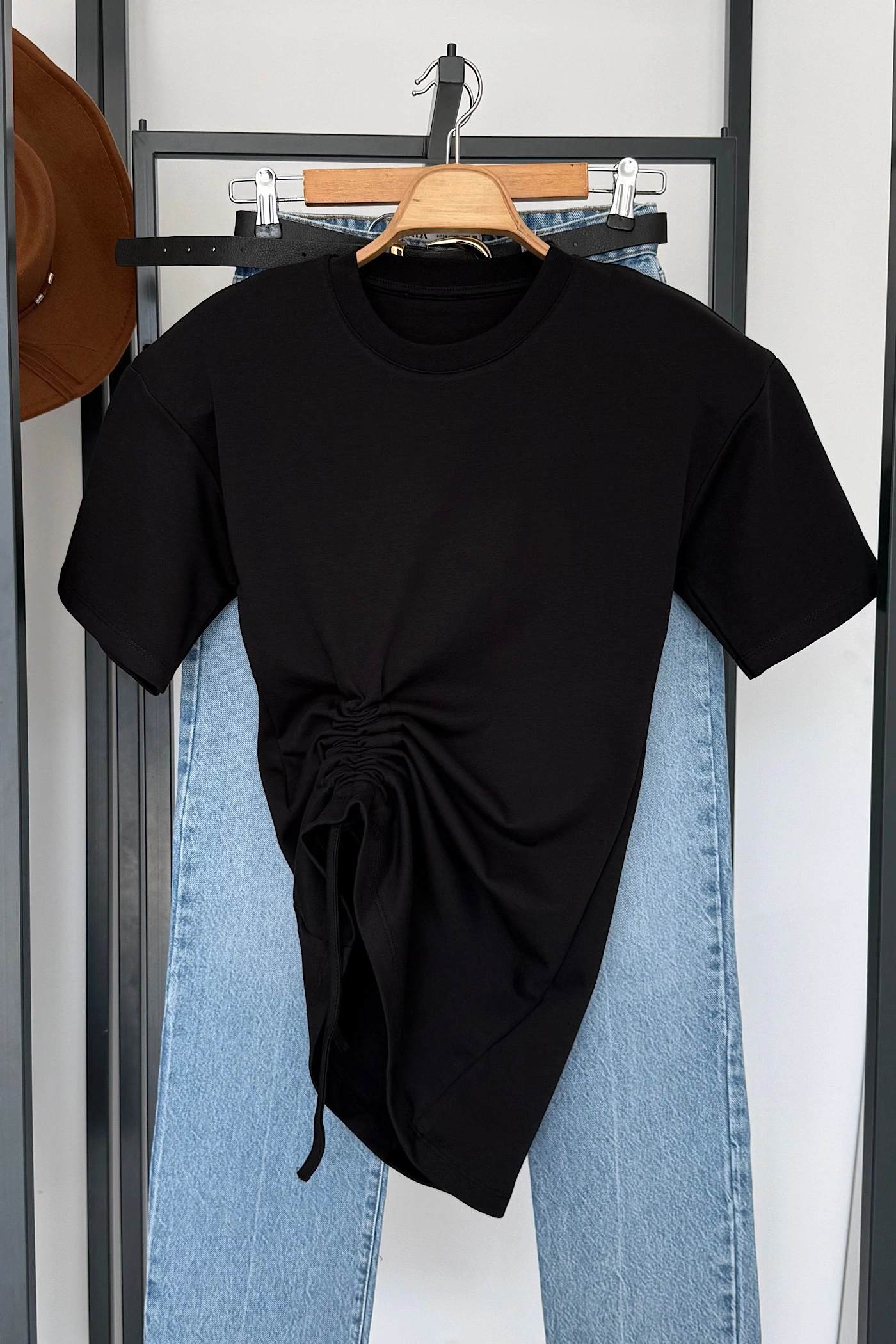 Yandan Büzgülü Bluz Siyah