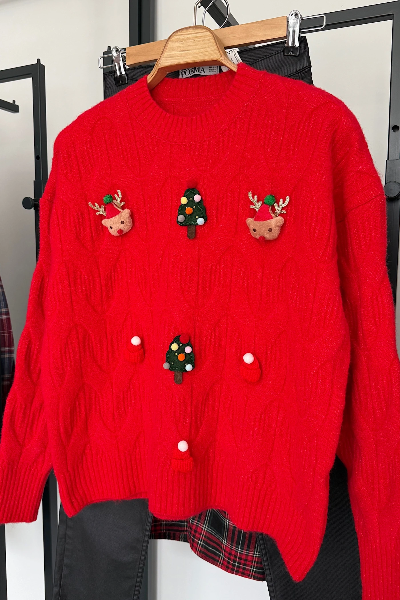 Baklava Desen Madonna Yaka Kazak Kahverengi
