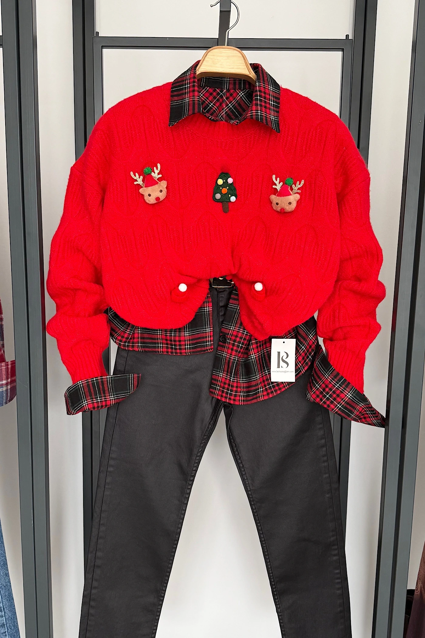 Ekose Oduncu Gömlek Kırmızı-Lacivert