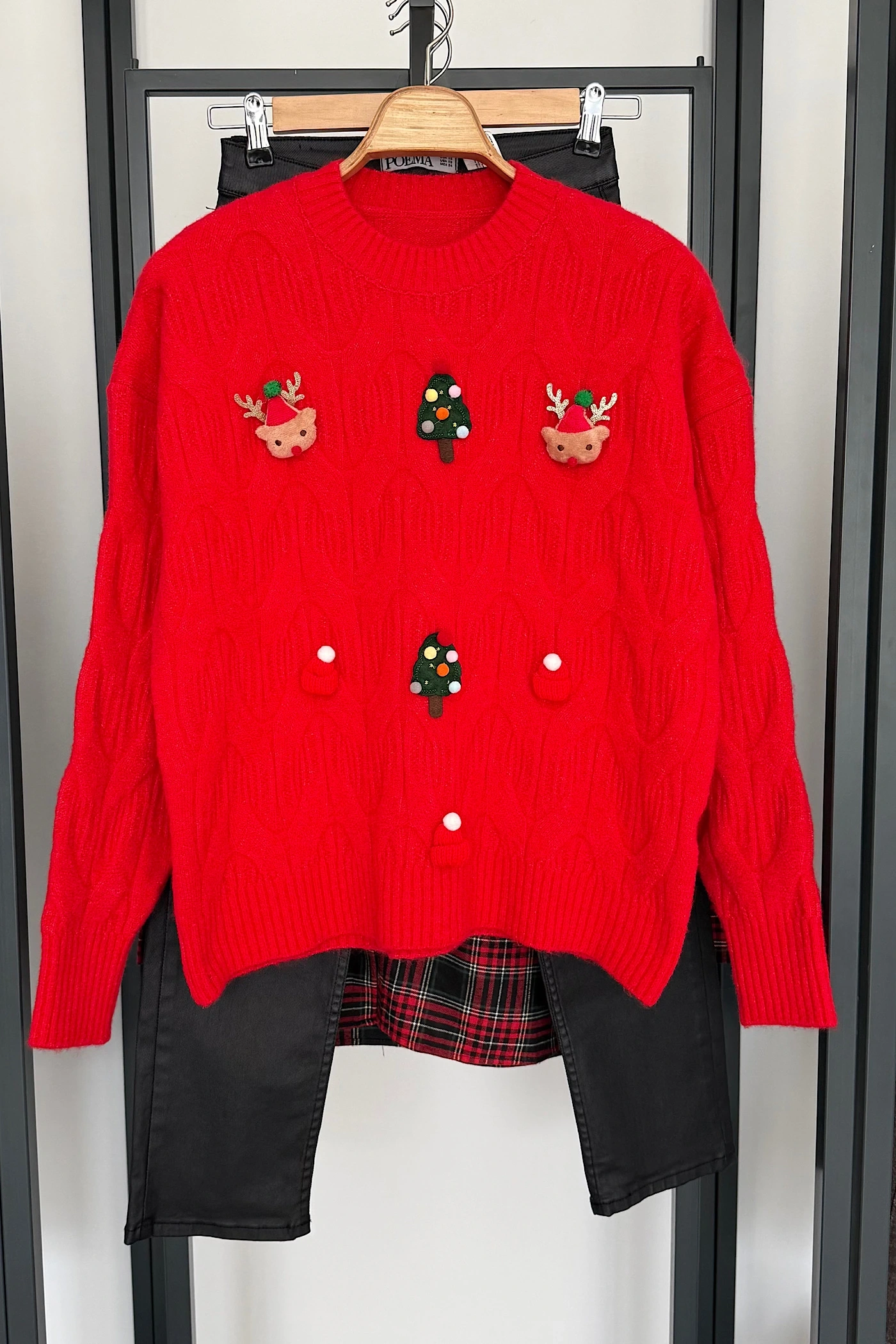 Baklava Desen Madonna Yaka Kazak Antrasit