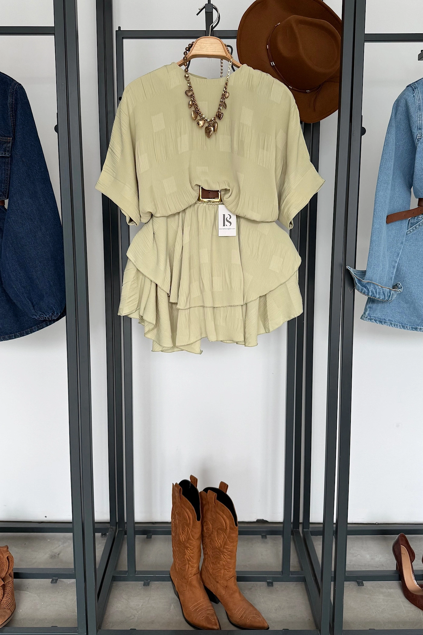 Kuşaklı Modal Gömlek Haki