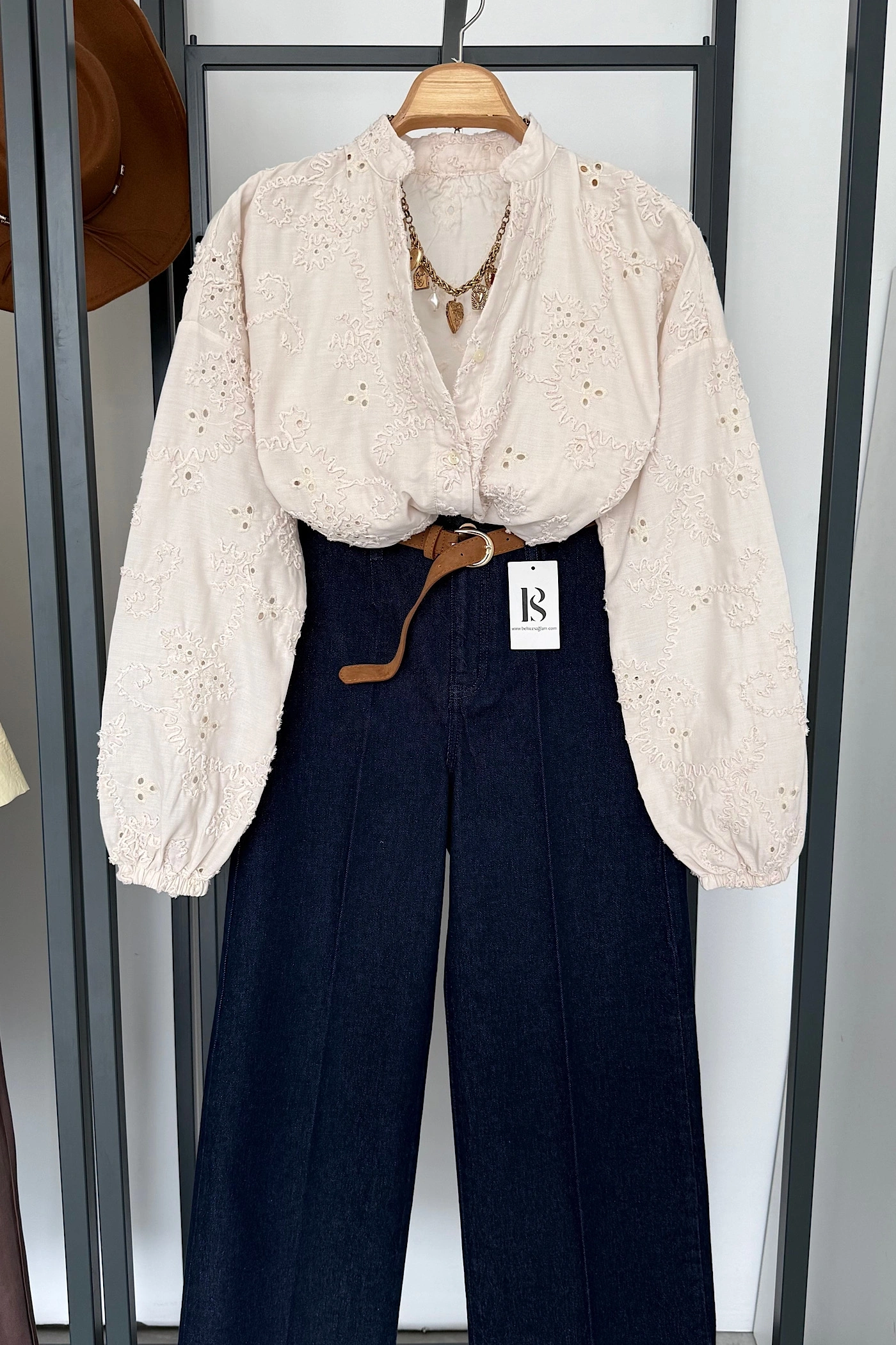 Güpürlü Hakim Yaka Gömlek Beyaz