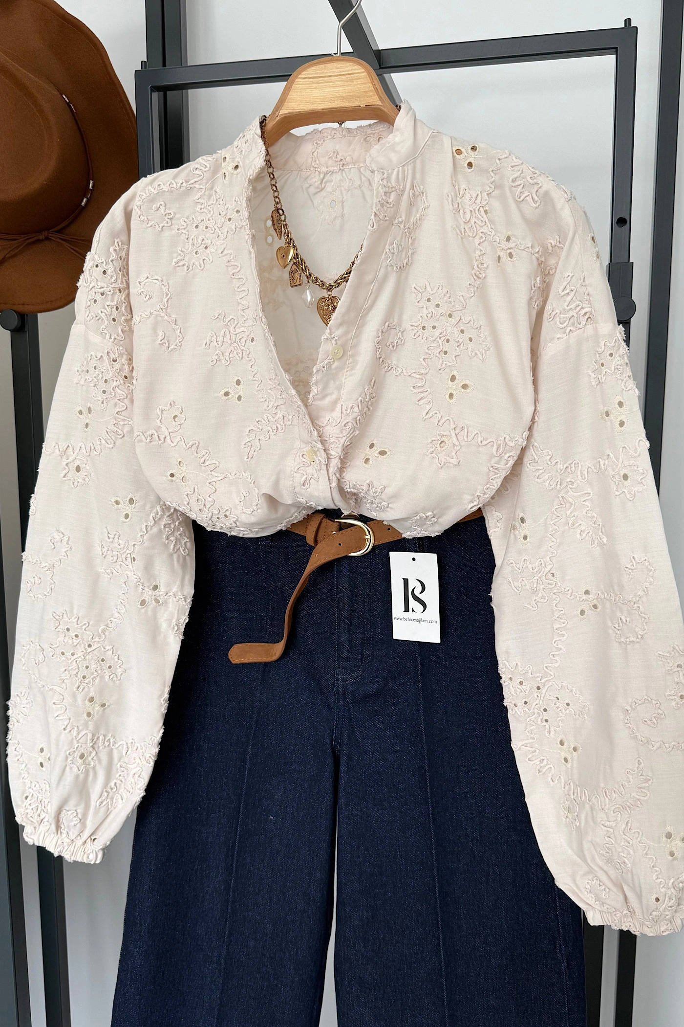 Çiçekli Süs Bağcıklı Gömlek Taş