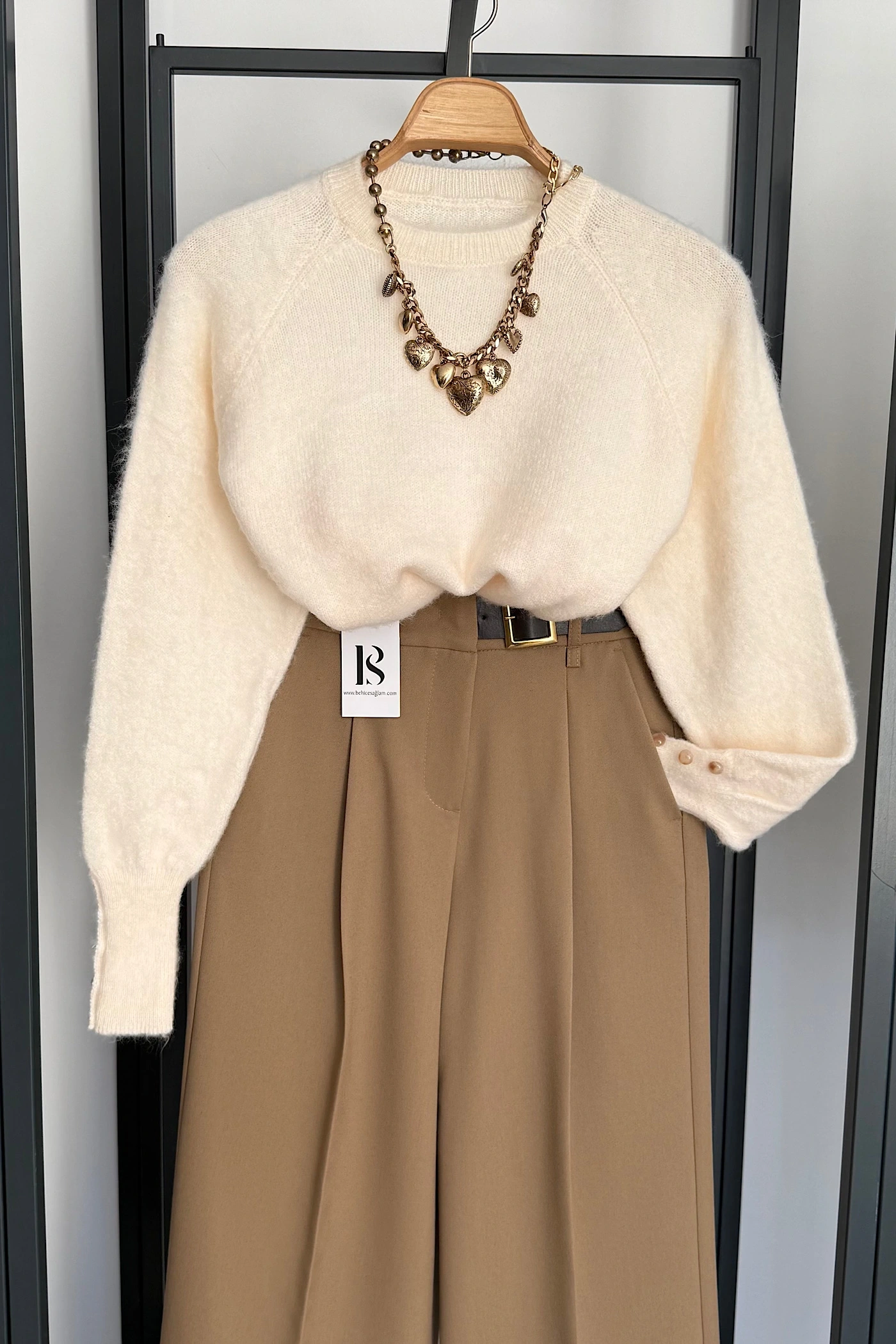 Şardonlu Alpaka Karışımlı Triko Kazak Karamel
