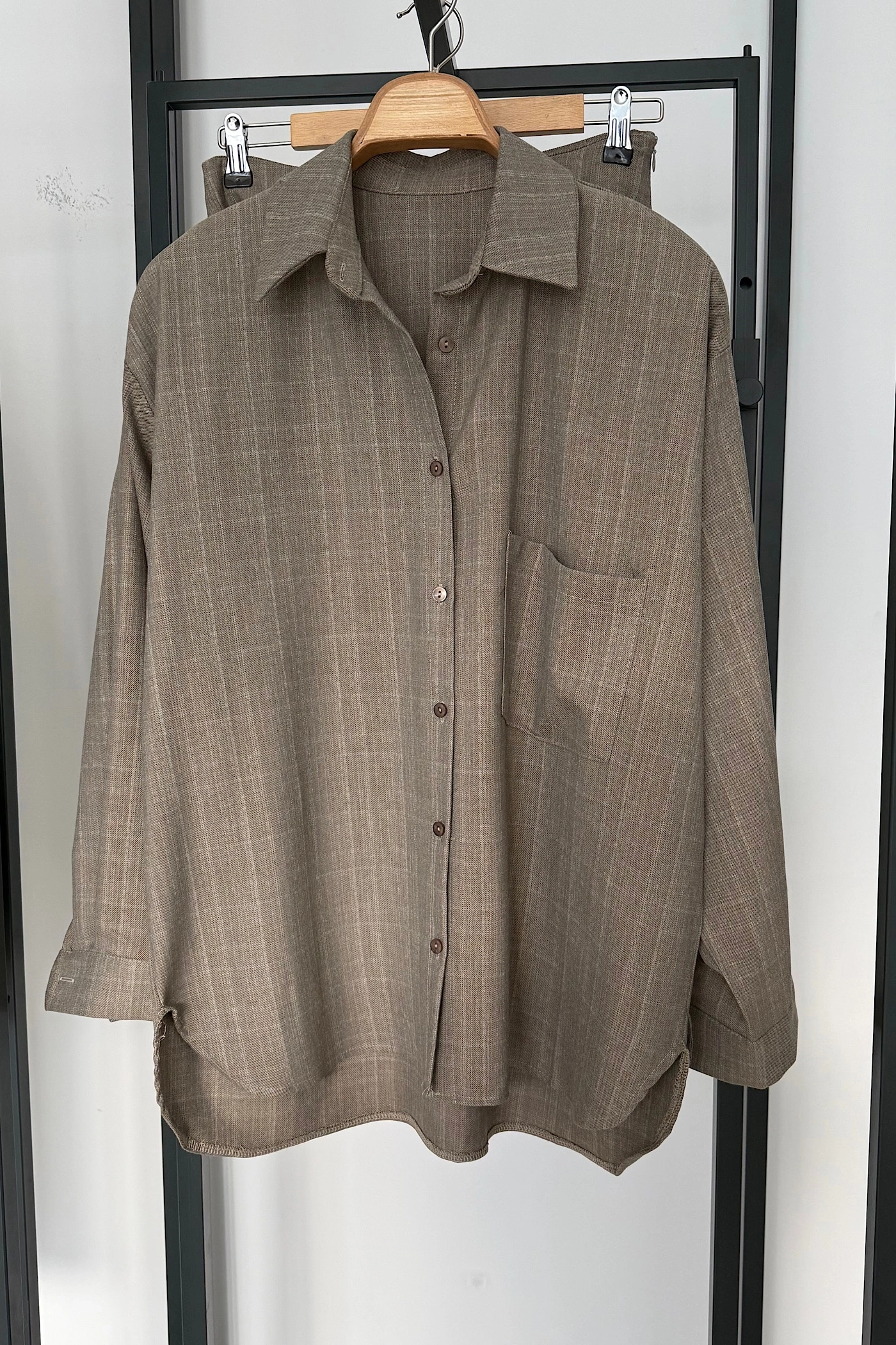 Oysh Çıtçıtlı Yelek Takım Kahverengi