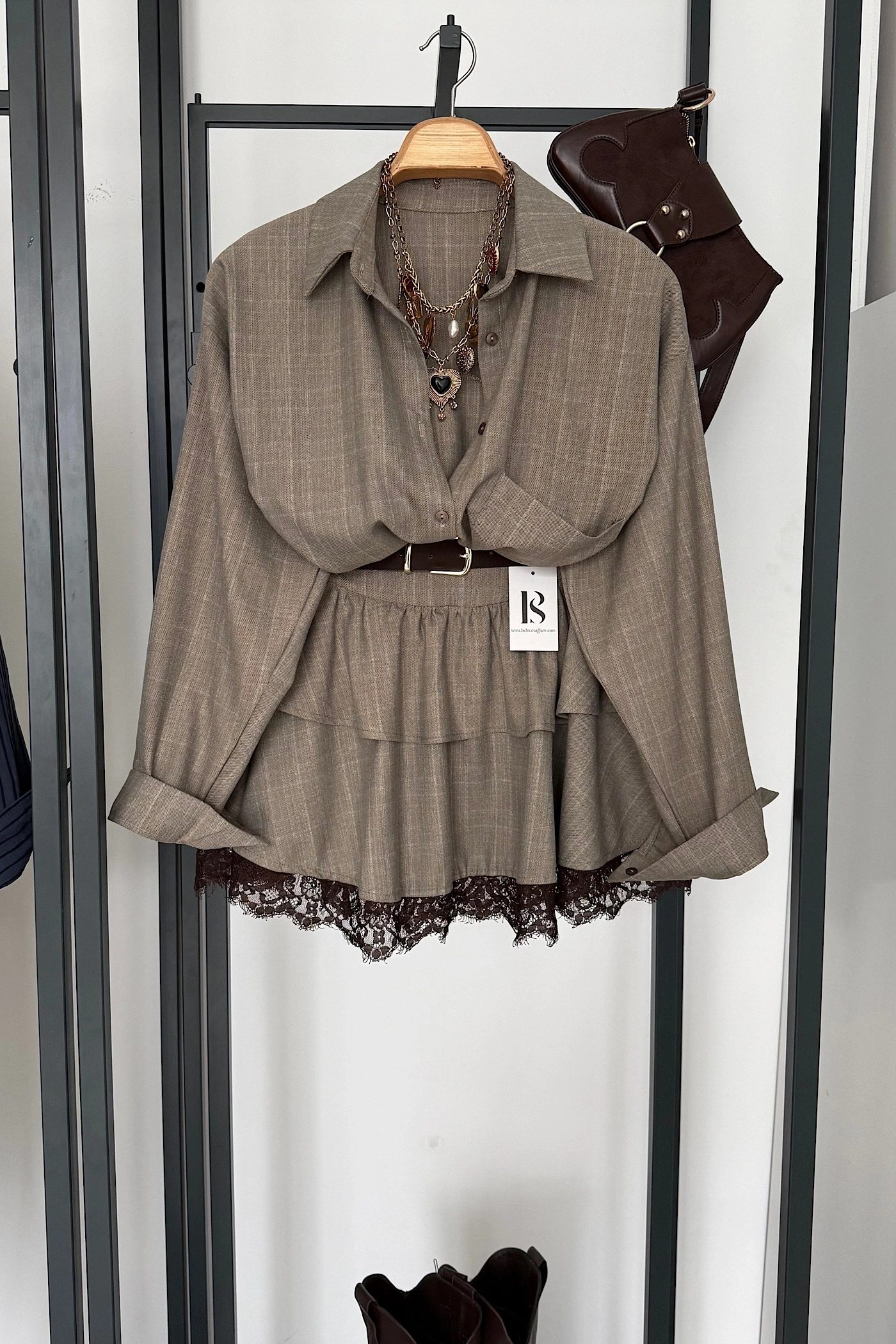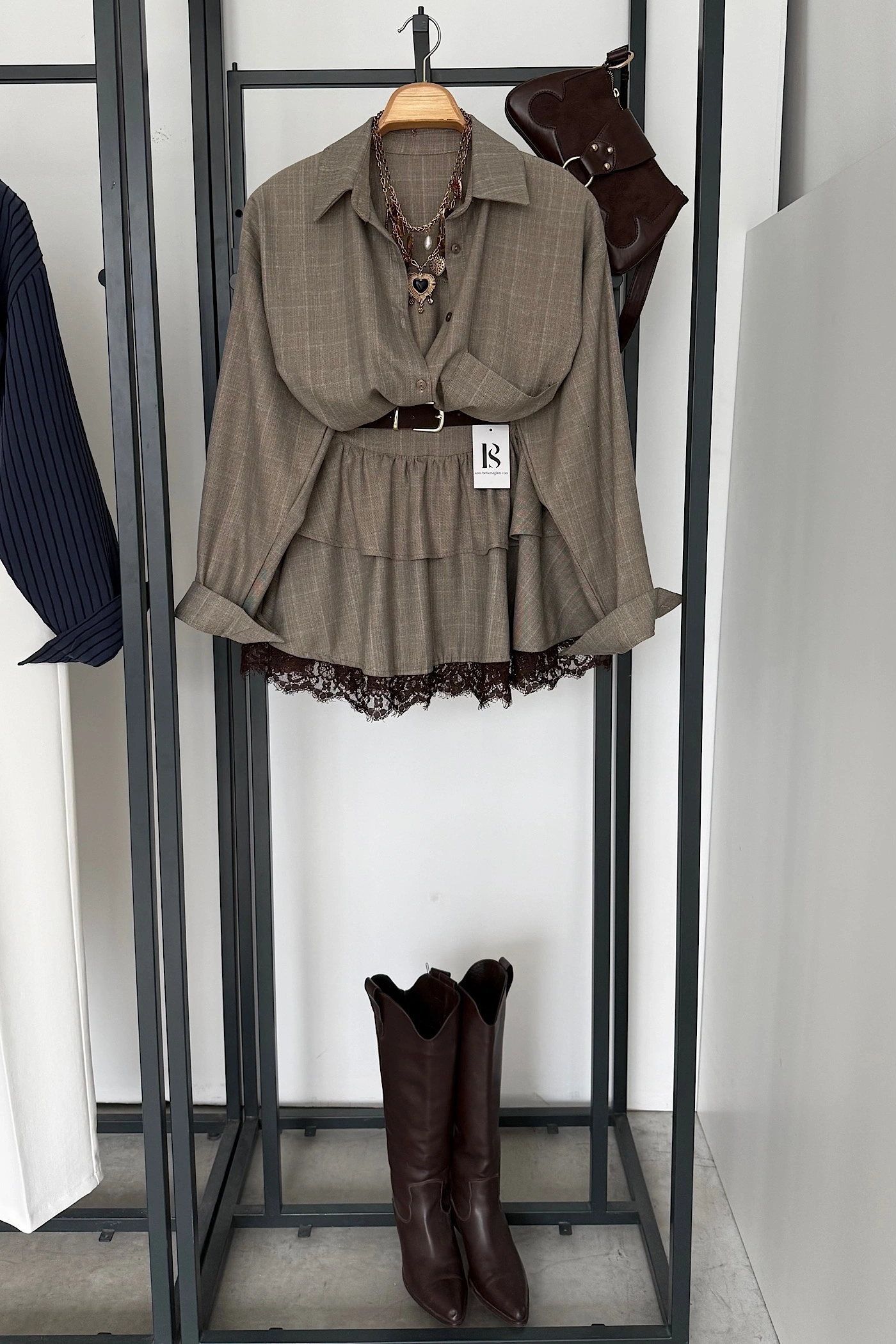 Bisiklet Yaka Çan Etekli Takım Kahverengi