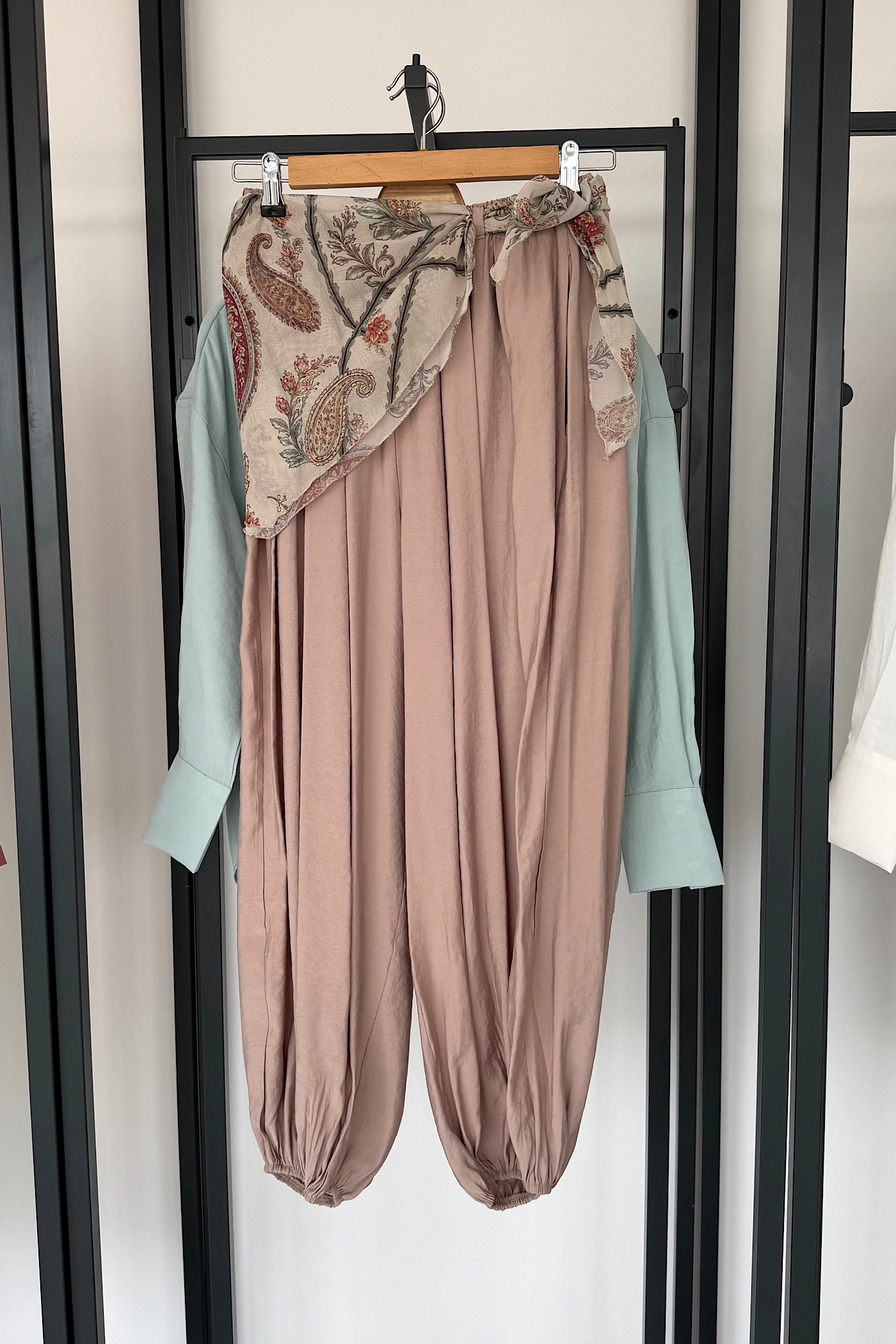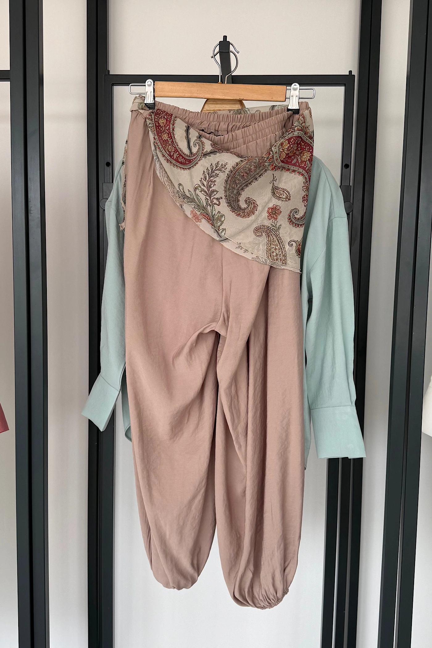 Kendinden Şal Detaylı Şalvar Pantolon Haki