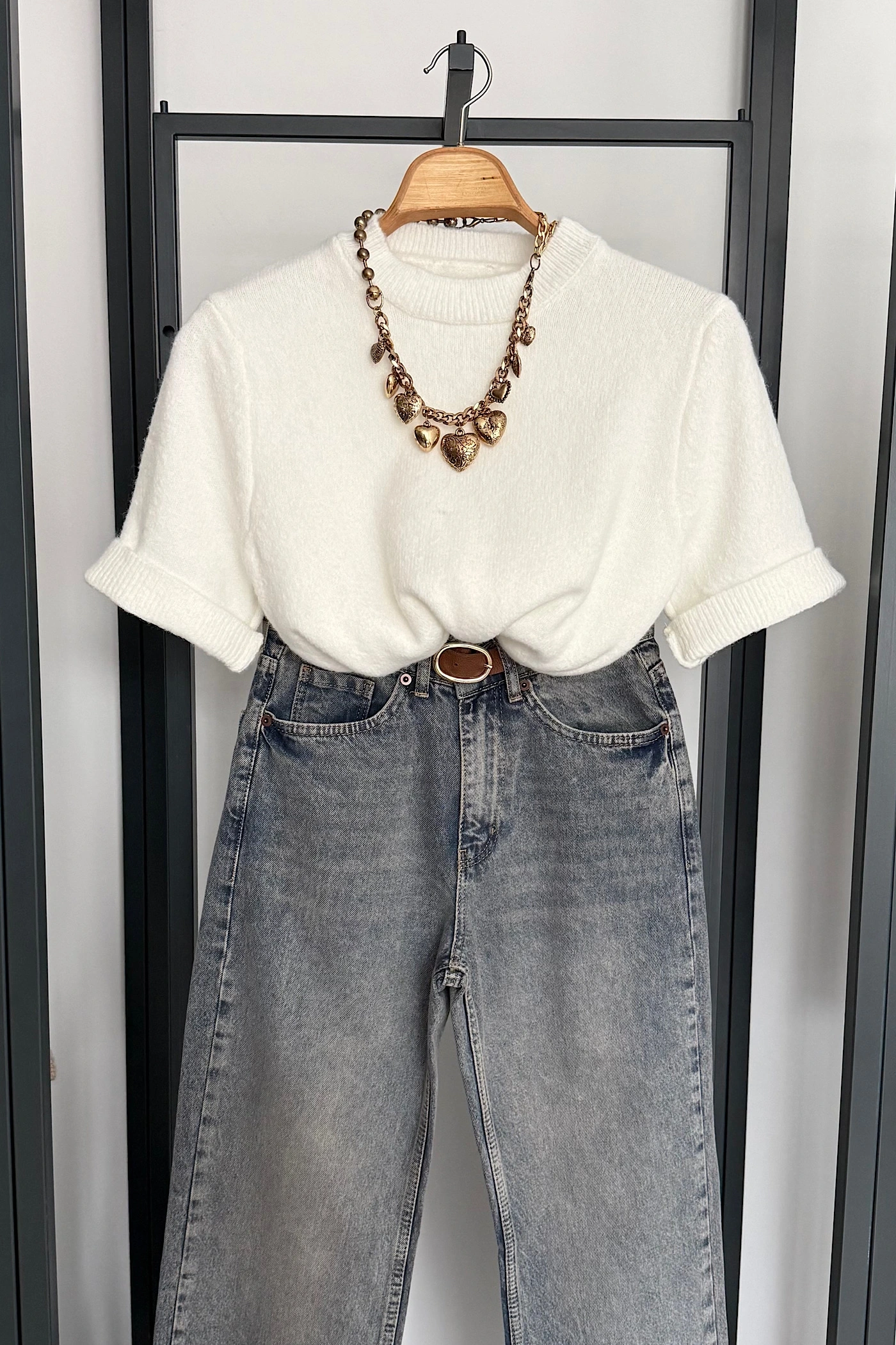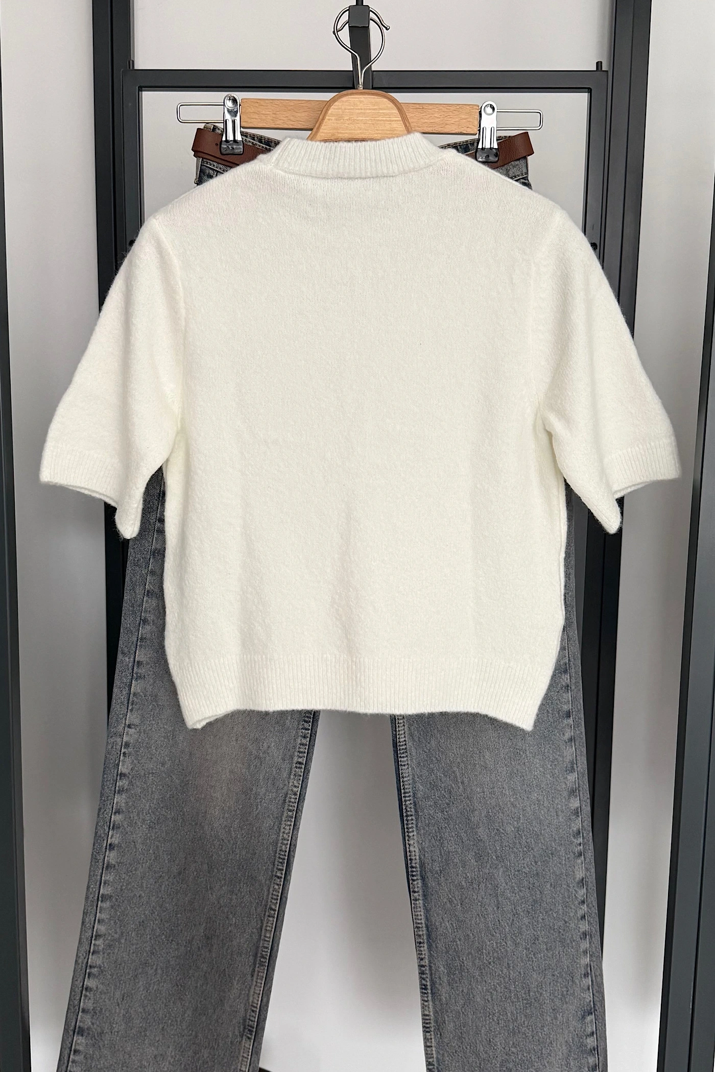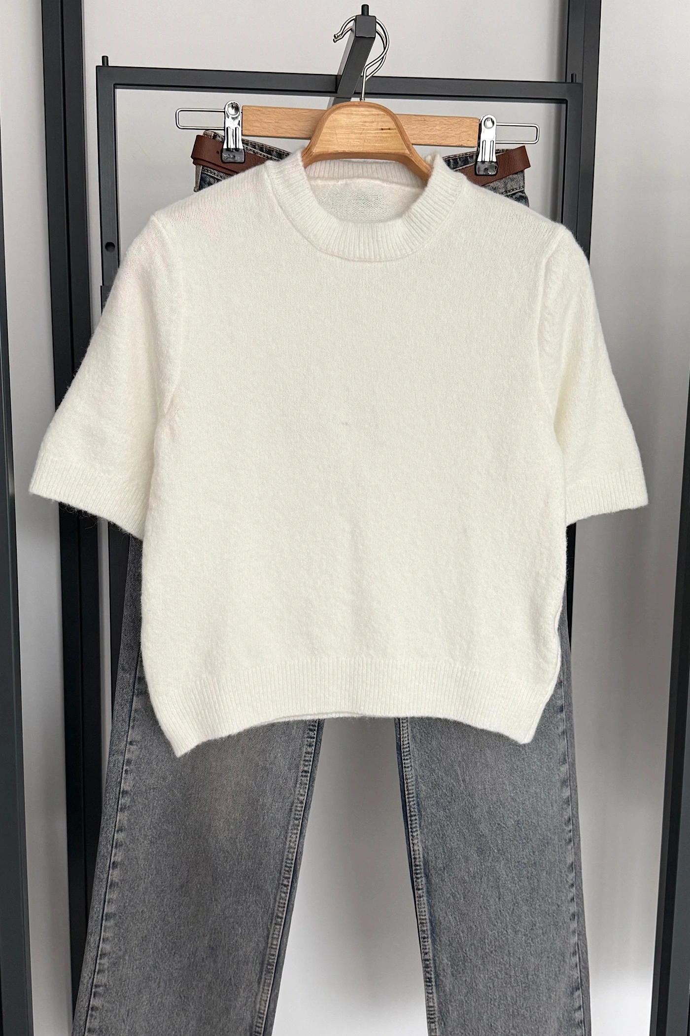 Kısa Kol Düz Kazak Ekru