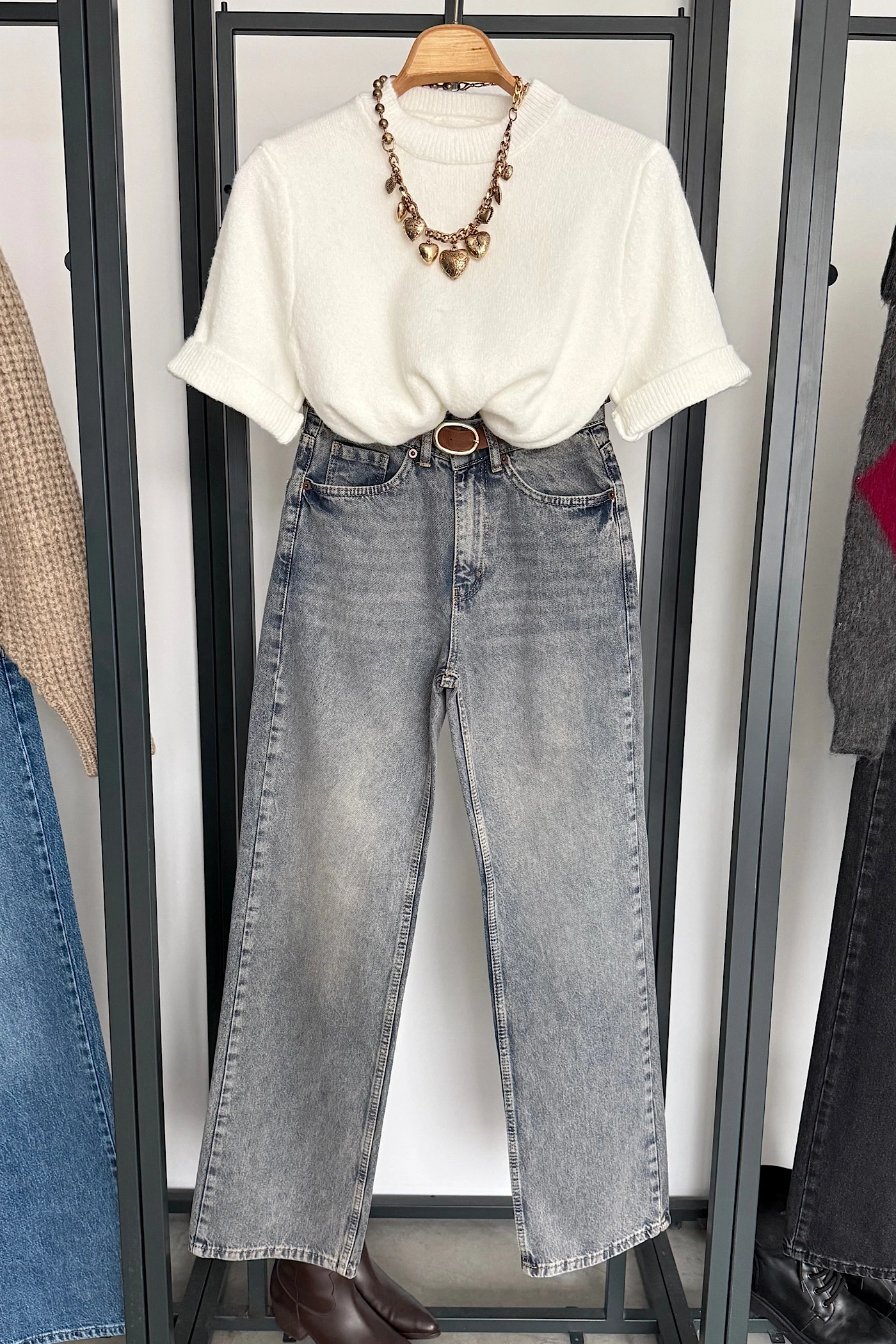 Kısa Kol Düz Kazak Gri
