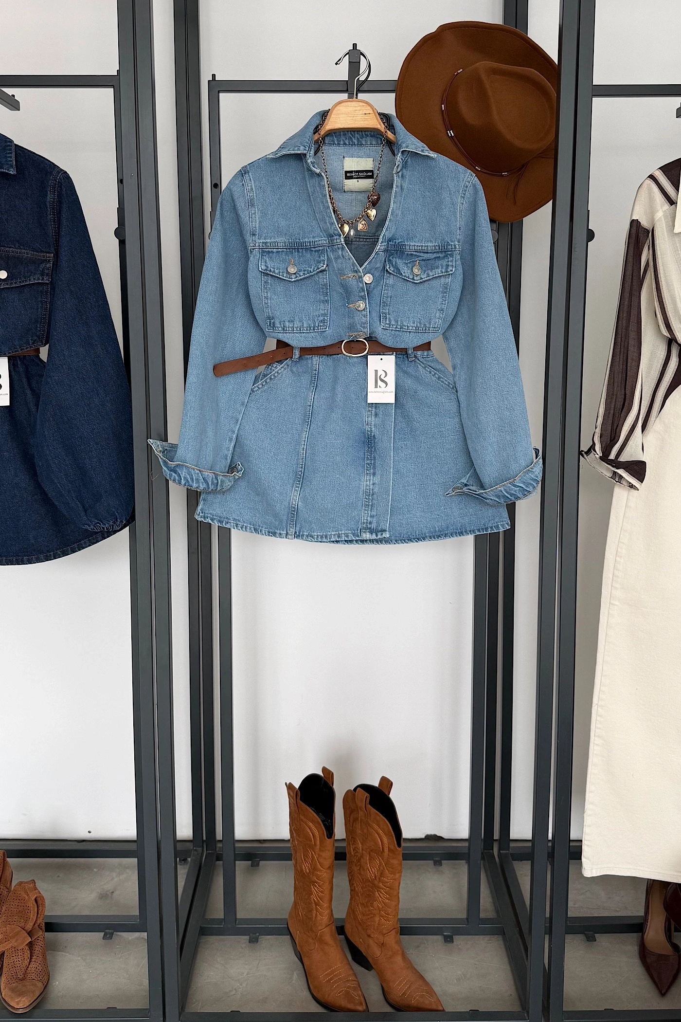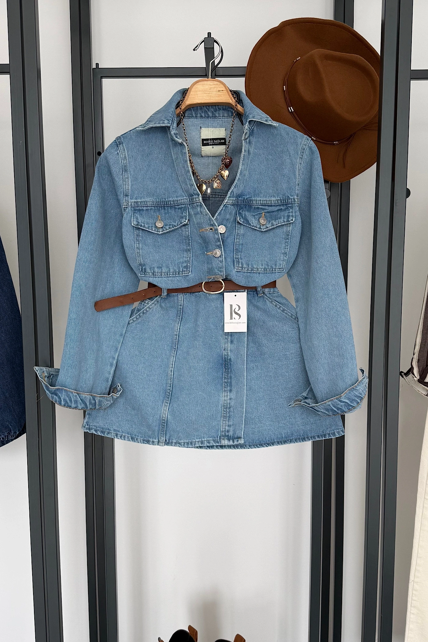 Cepli Çizgili Oversize Gömlek Kahve-Taş