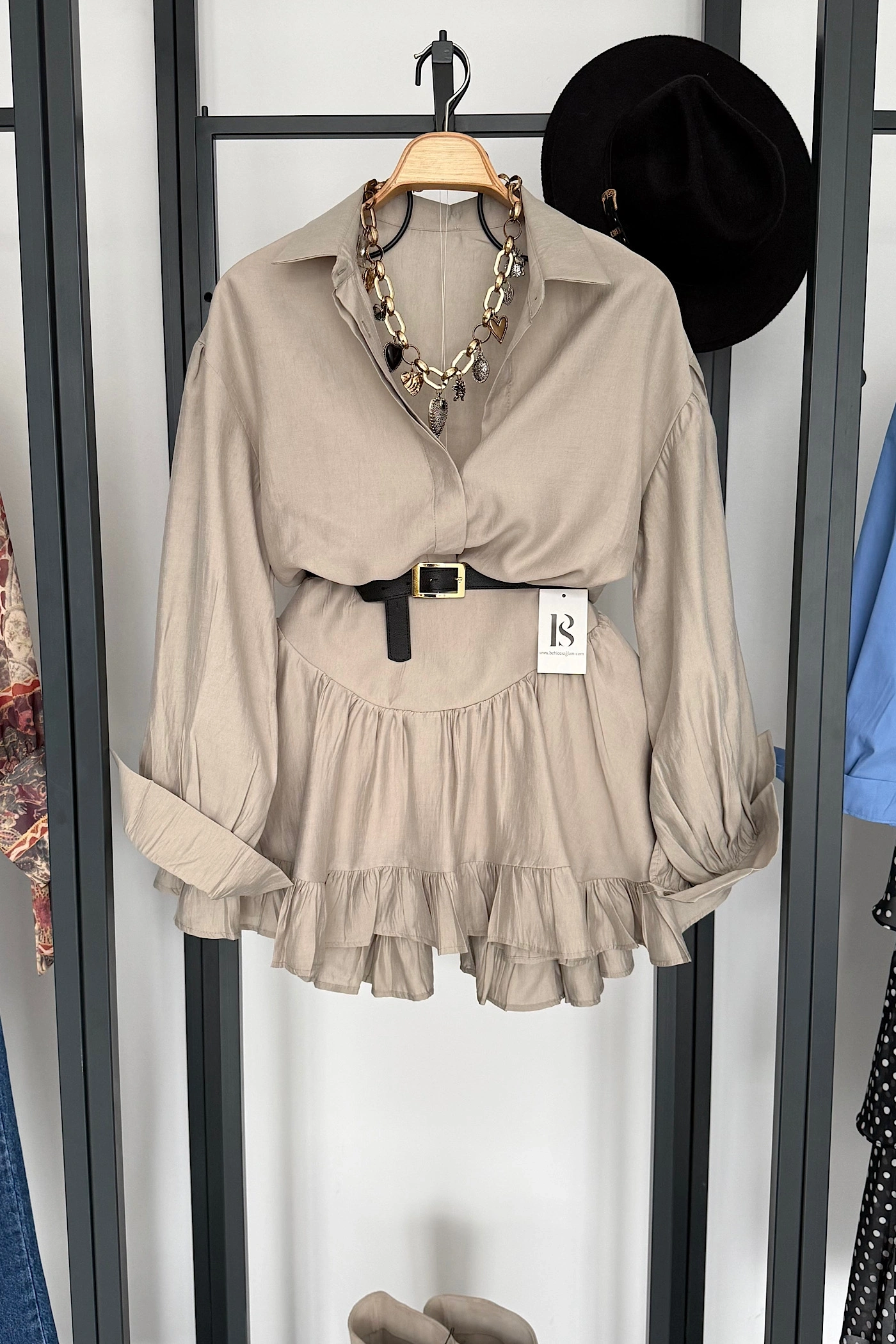 Premium Dokulu Gömlek Pantolon Takım Bej