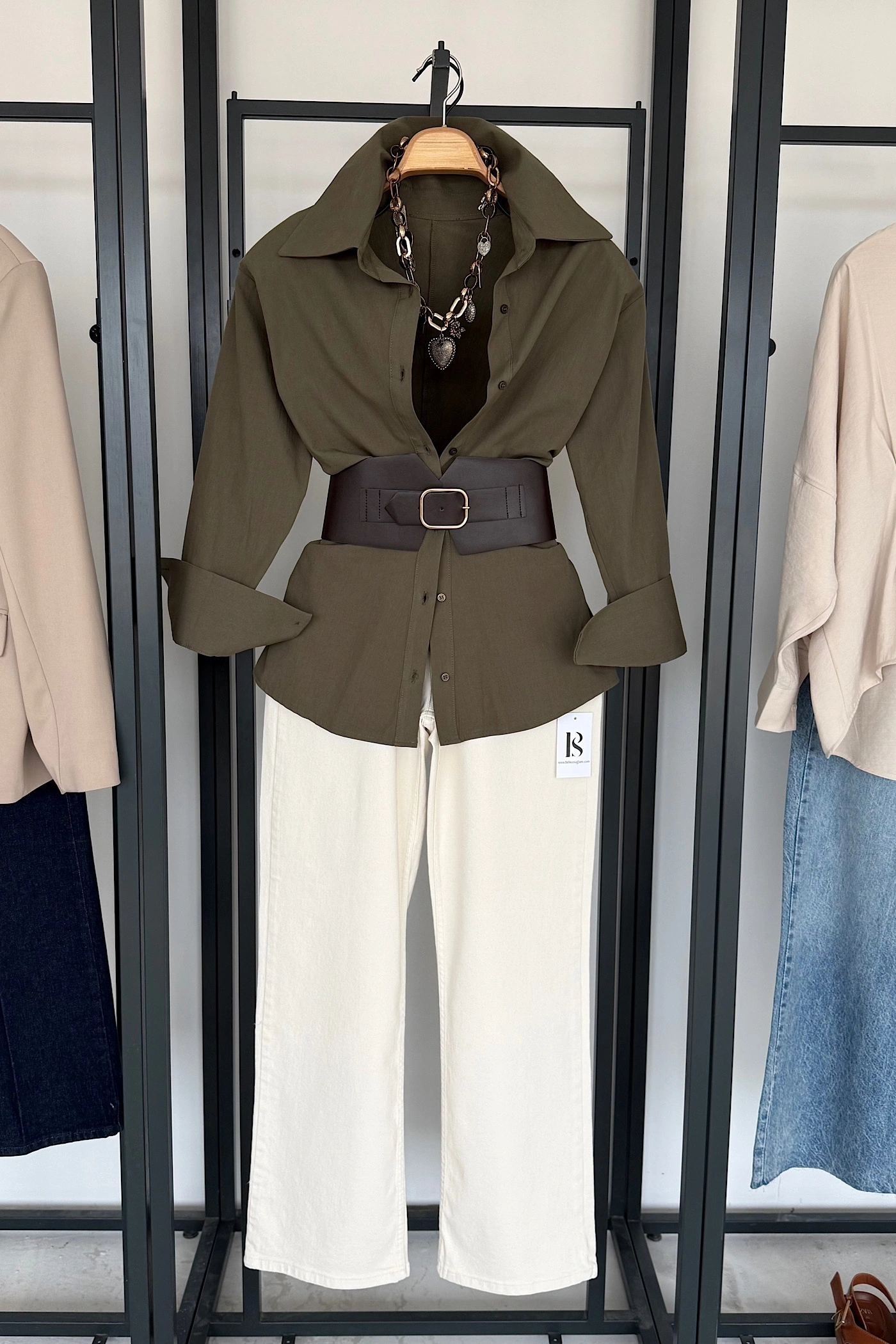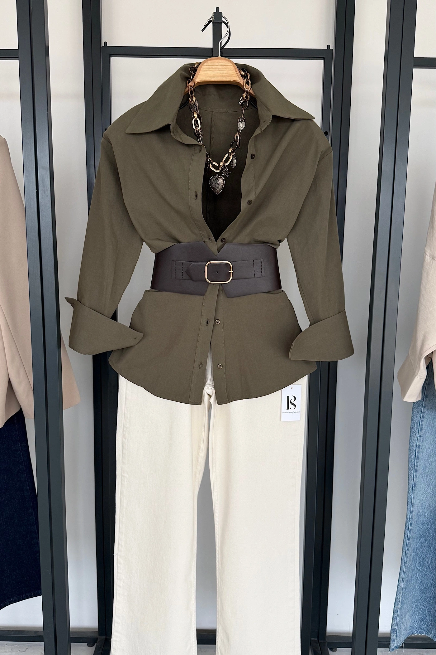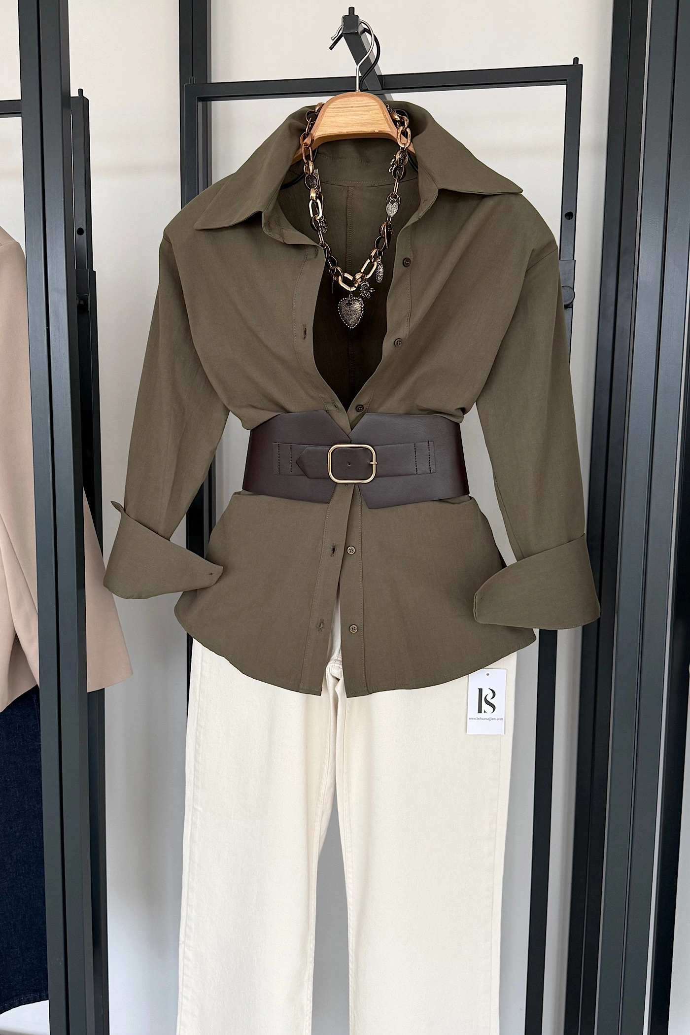 Korse Kemerli Basic Gömlek Haki