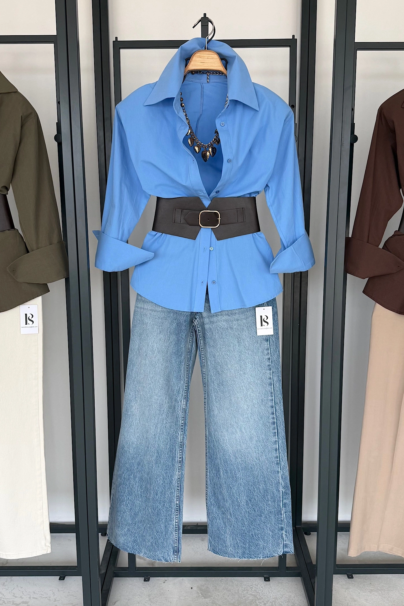 Bisiklet Yaka Kolsuz Premium Uzun Kot Elbise Mavi