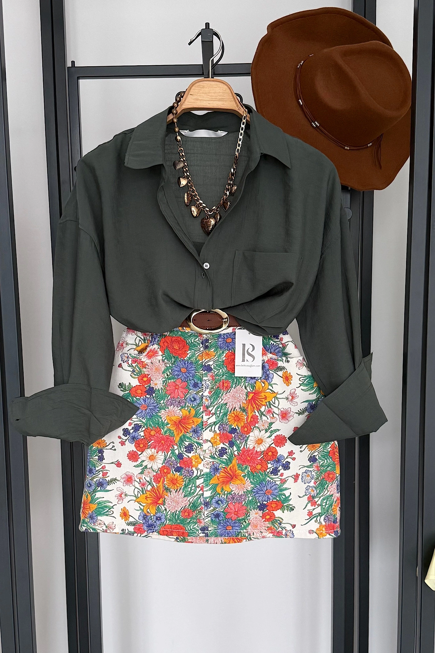 Kuşaklı Modal Gömlek Haki