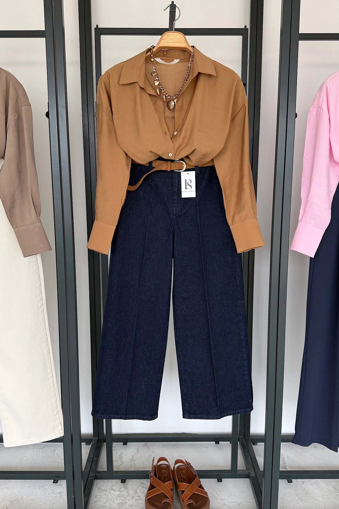 Korse Kemerli Basic Gömlek Kahverengi