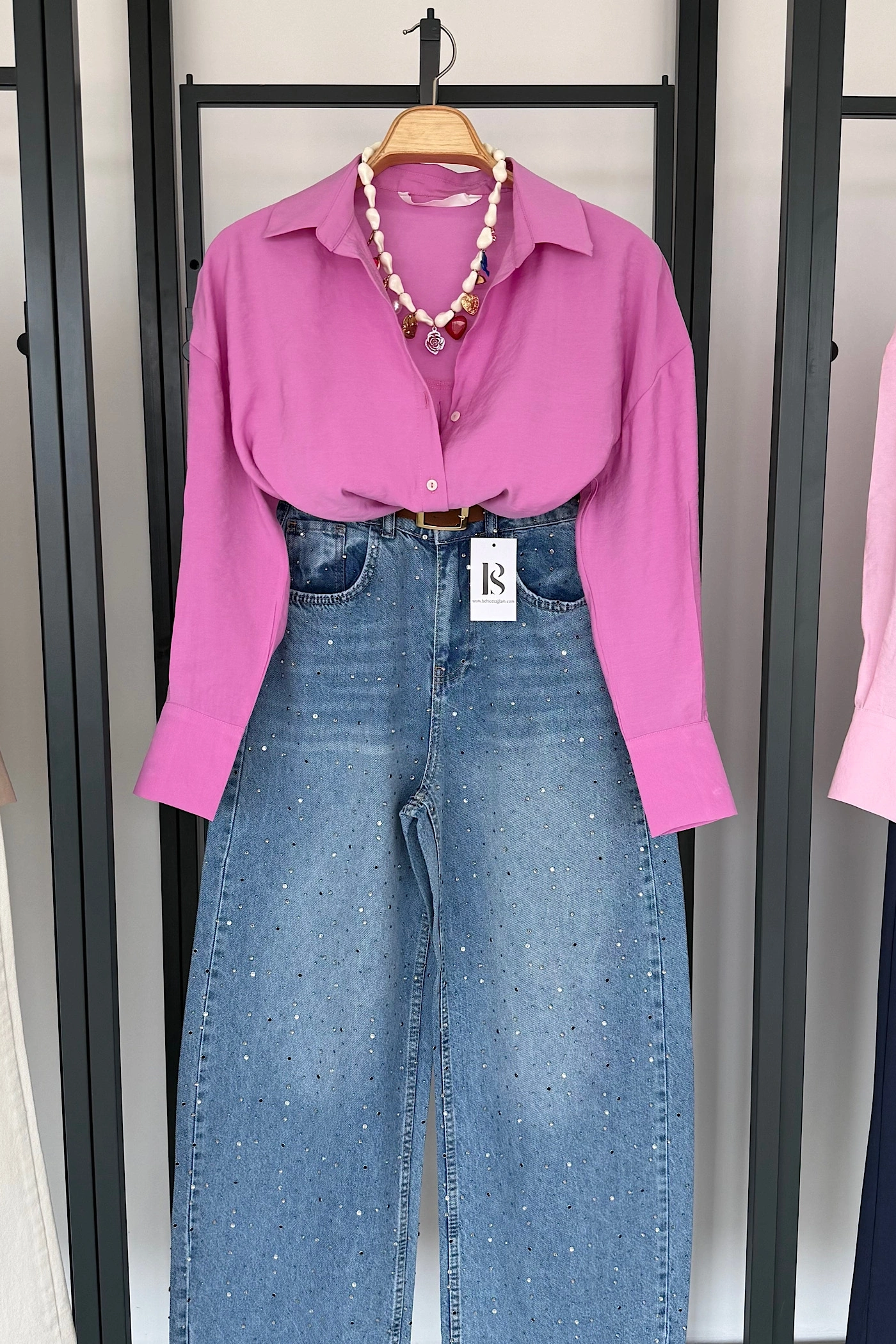 Arkası Yırtmaçlı Çizgili Gömlek Taş