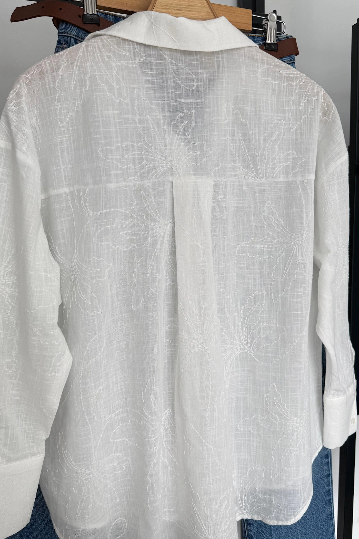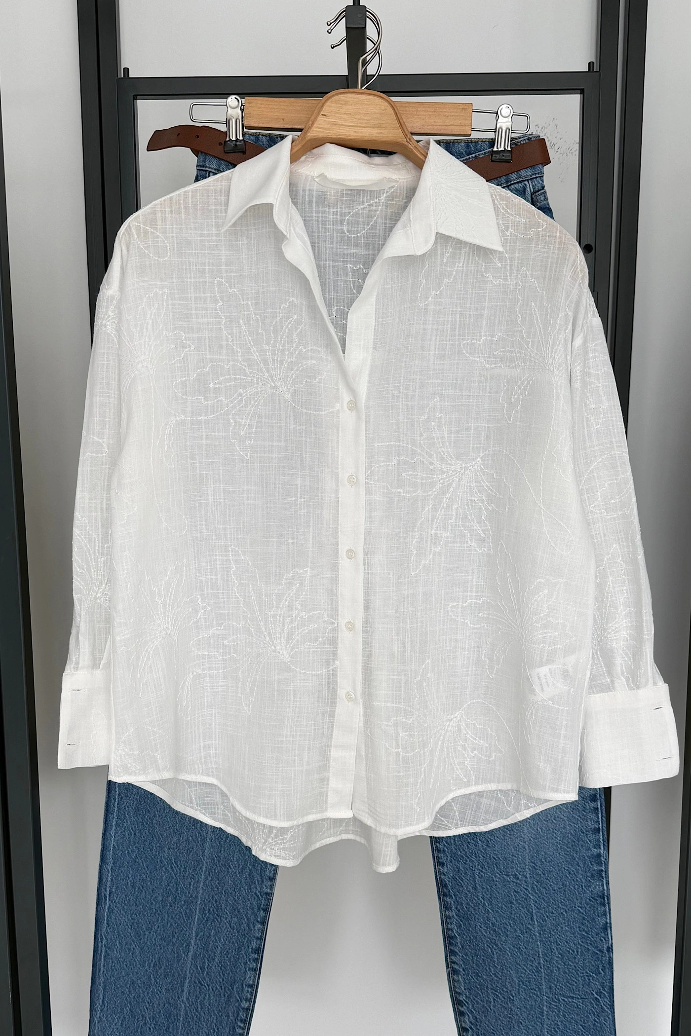 Süs Bağlamalı Nakışlı Gömlek Beyaz