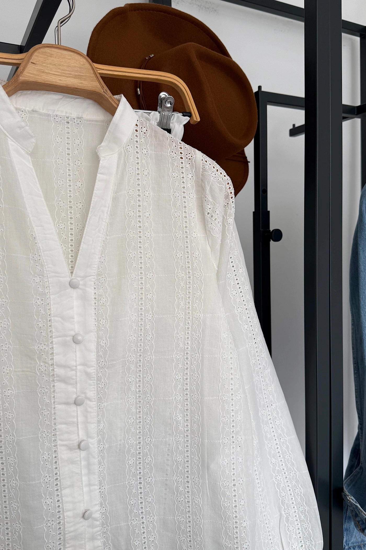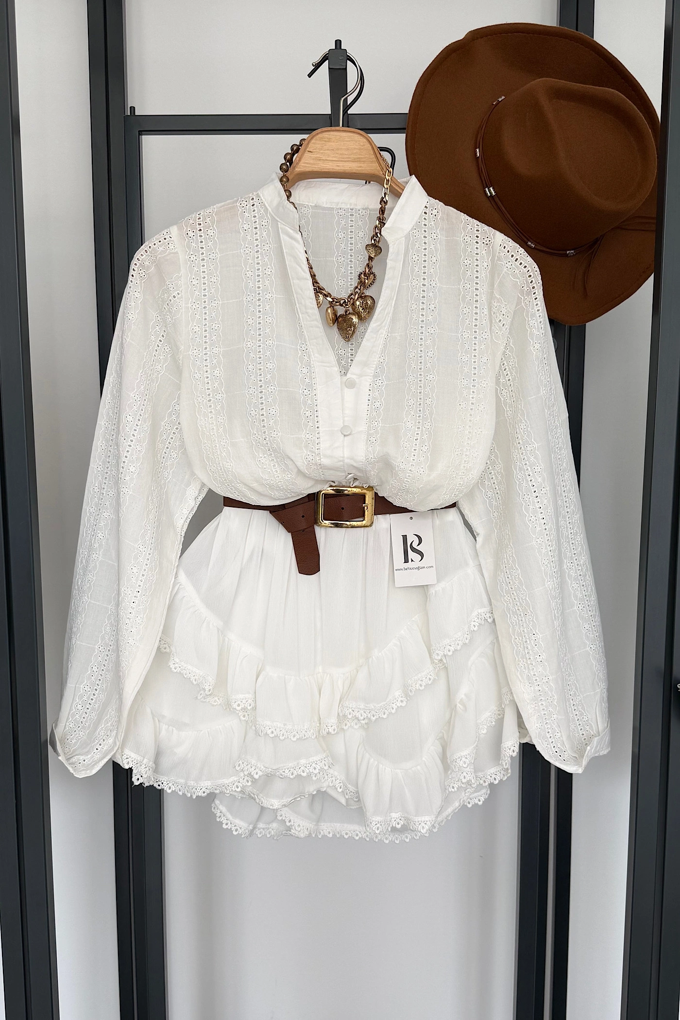 Boyun Bağlamalı Şifon Gömlek Kahve-Krem