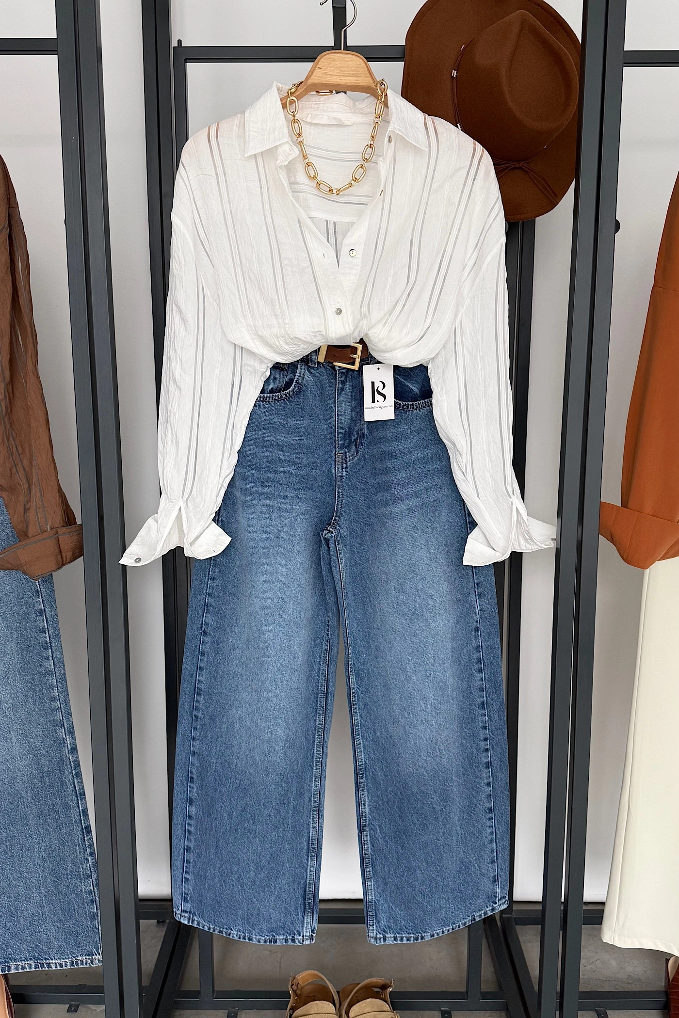 Dökümlü Tensel Oversize Gömlek Beyaz