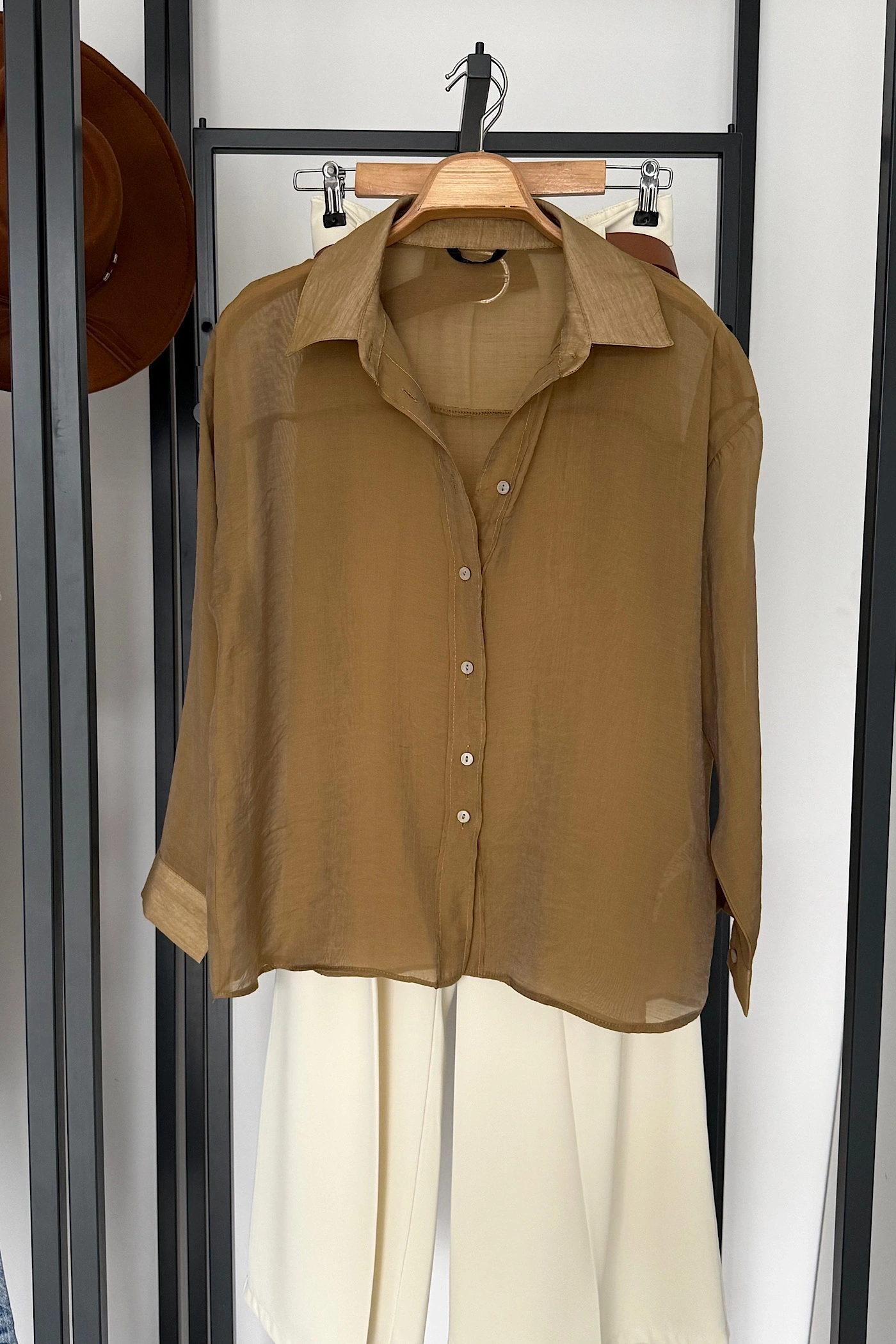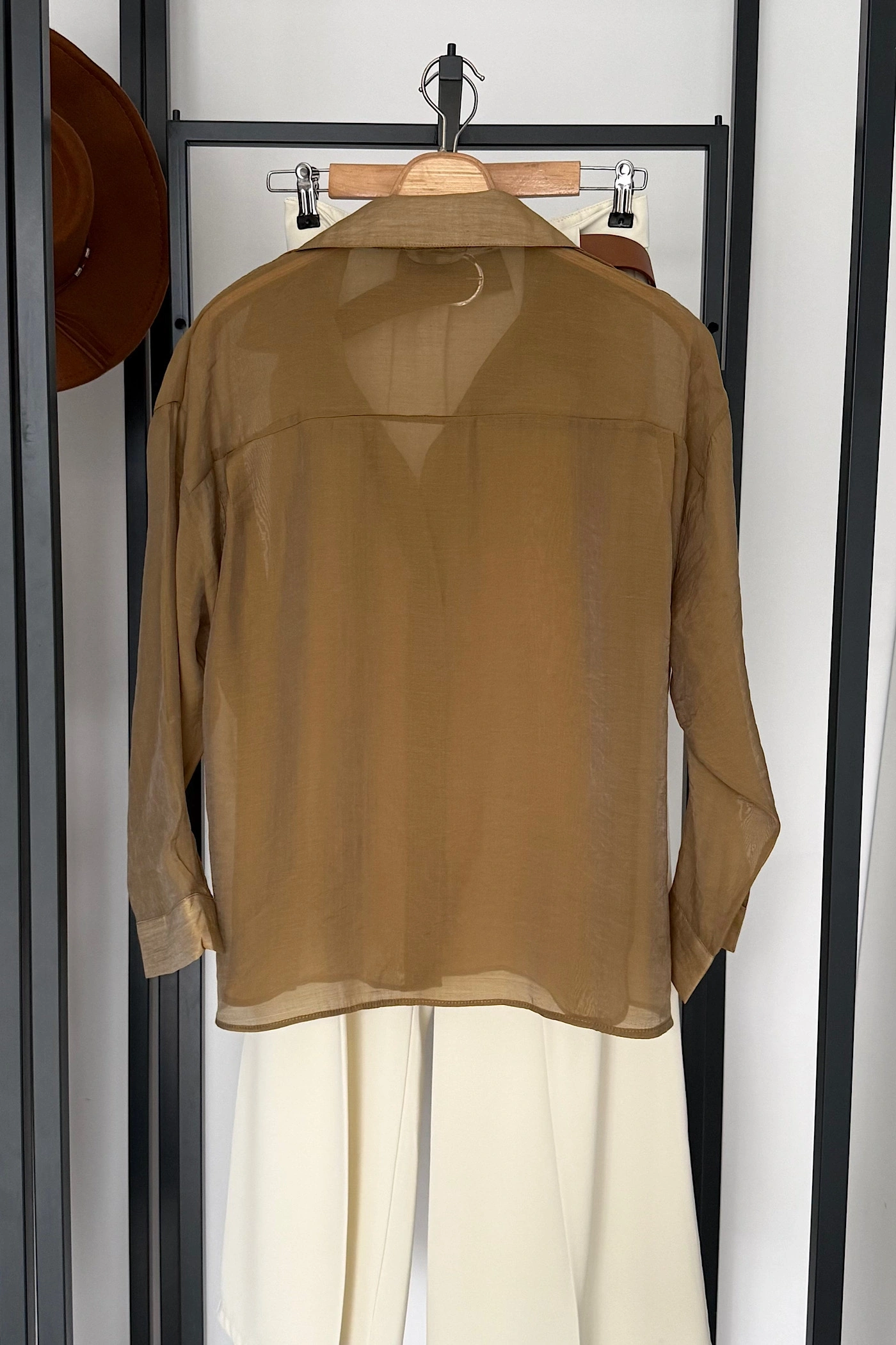 Puantiyeli Transparan Gömlek Kahverengi