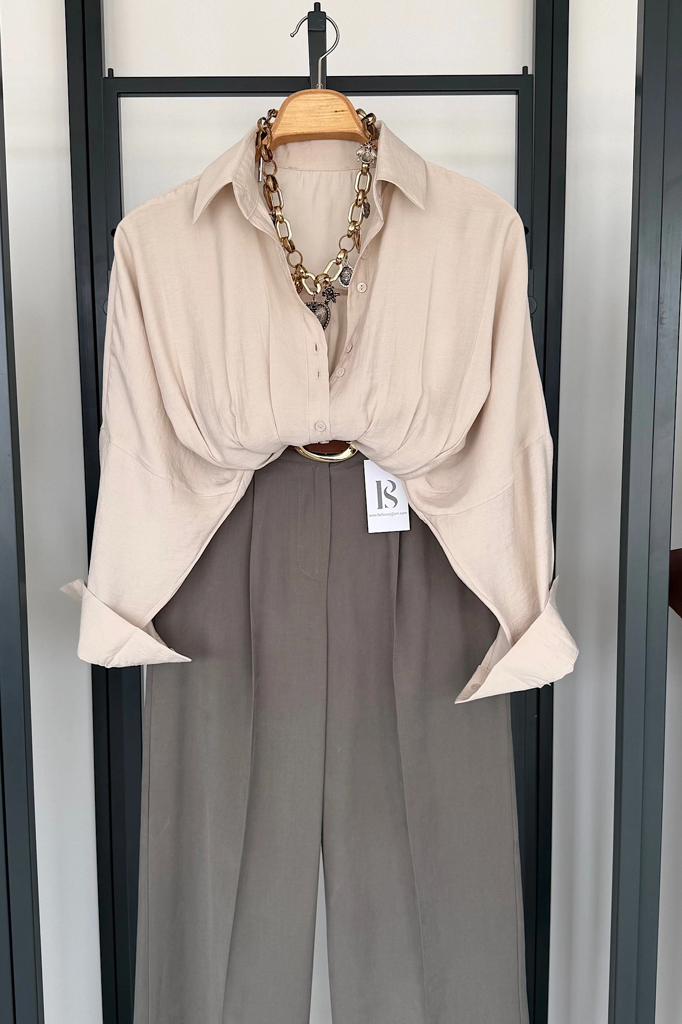 Arkası Yırtmaçlı Çizgili Gömlek Taş