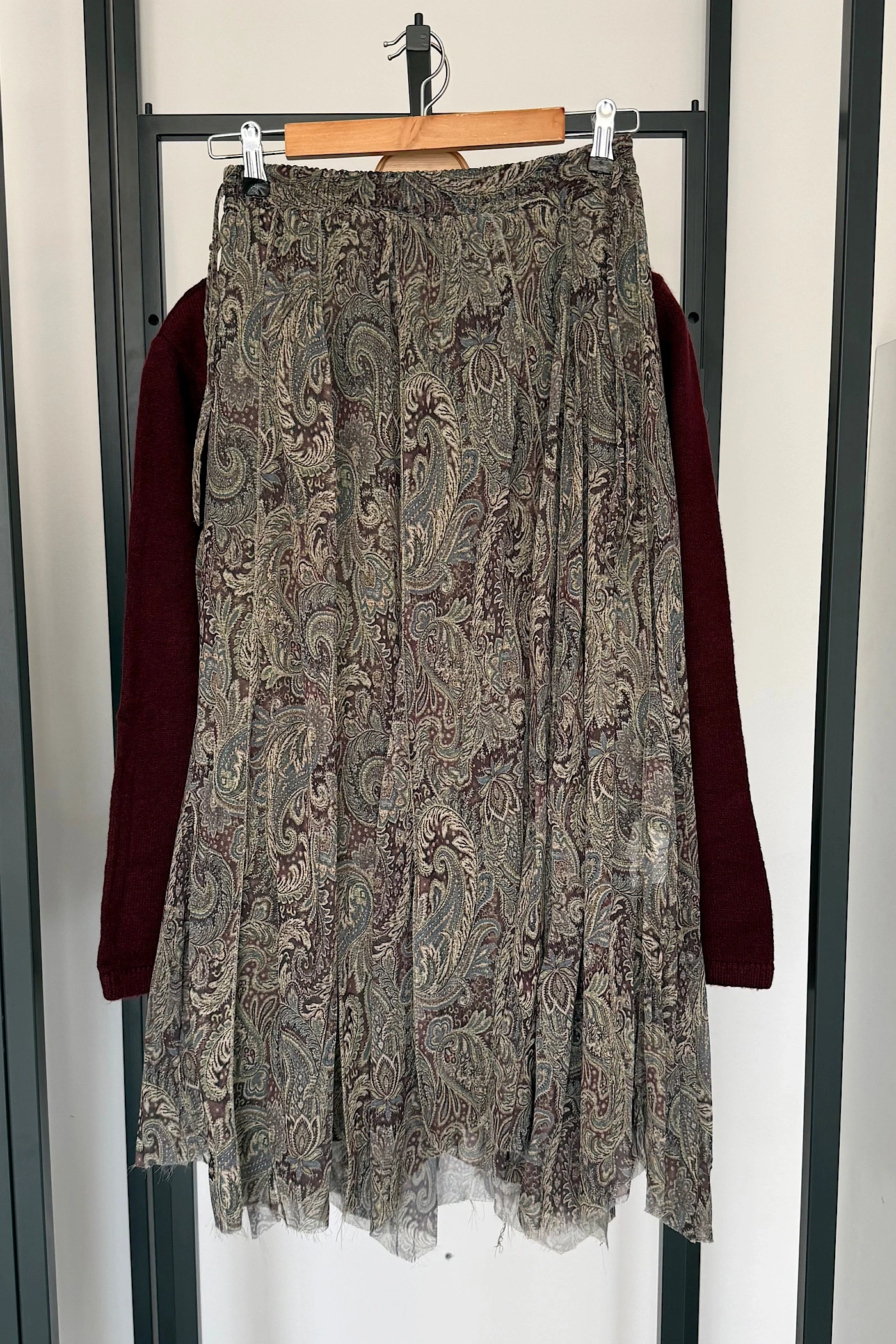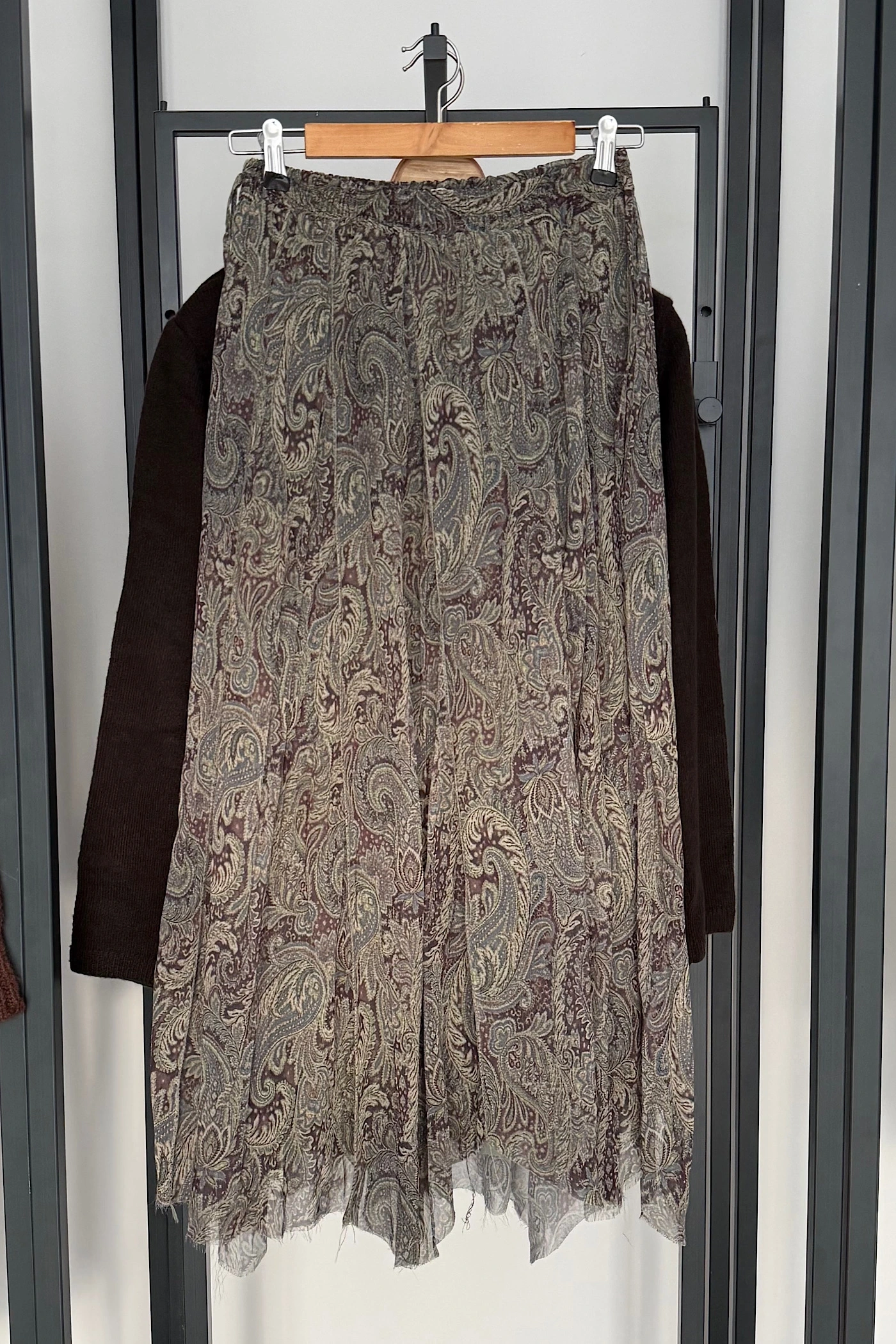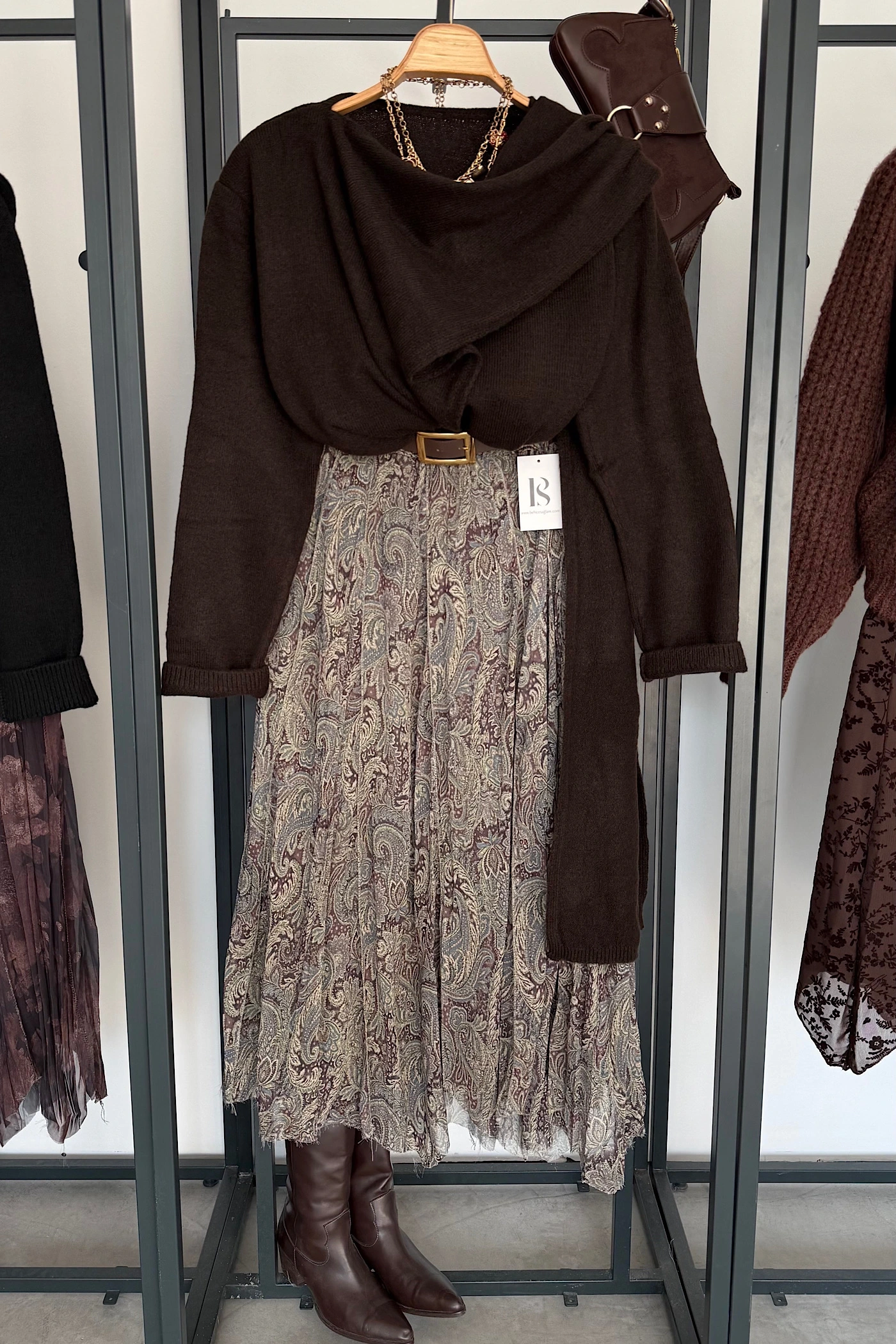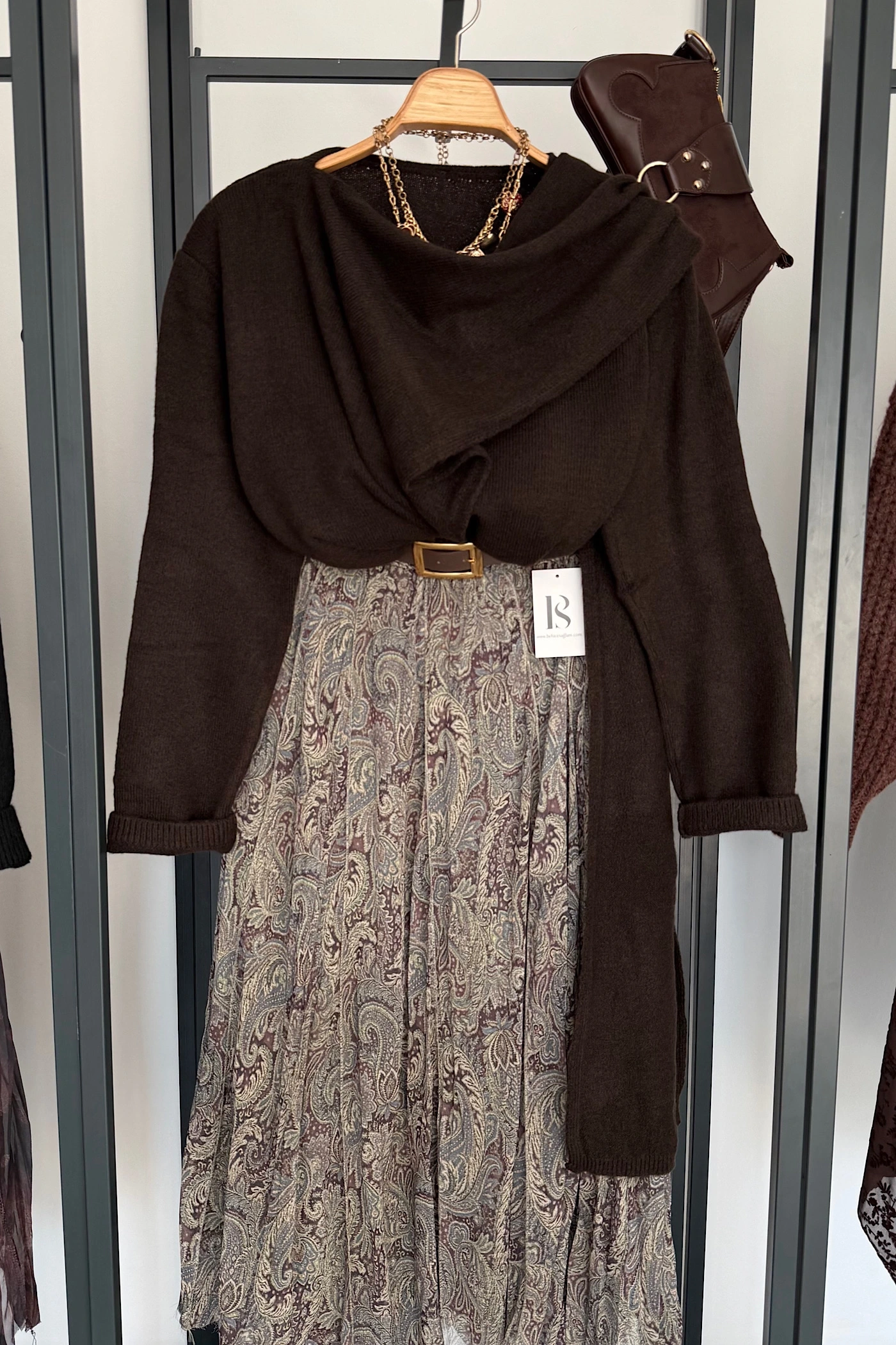 Pislik İsli Asimetrik Kesim İçi Astarlı Etek Kahverengi