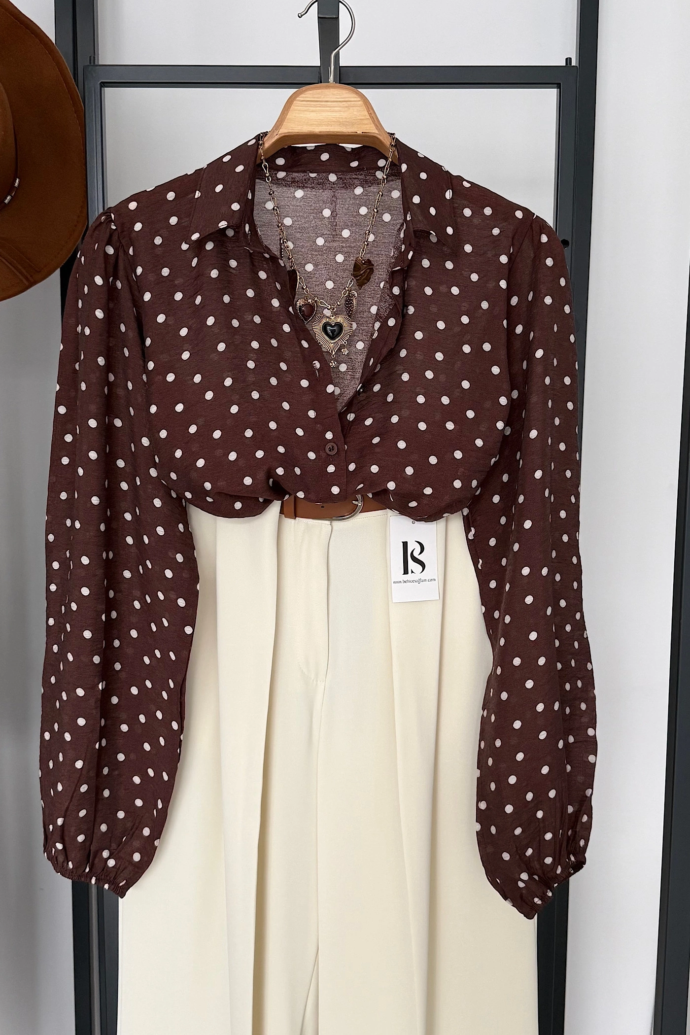 Puantiyeli Transparan Gömlek Kahverengi
