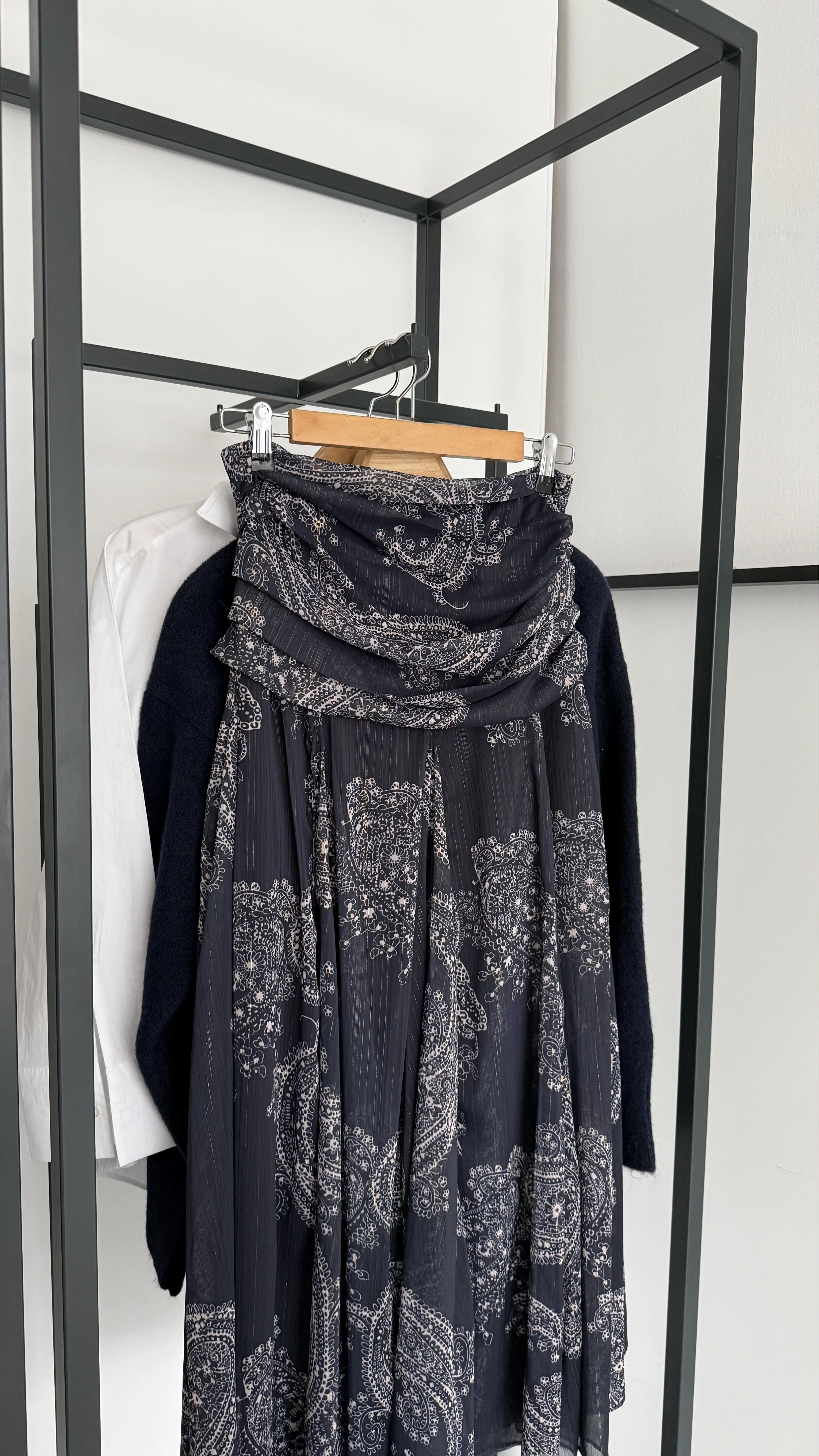 Kendinden Kemerli Bol Paça Pantolon Lacivert