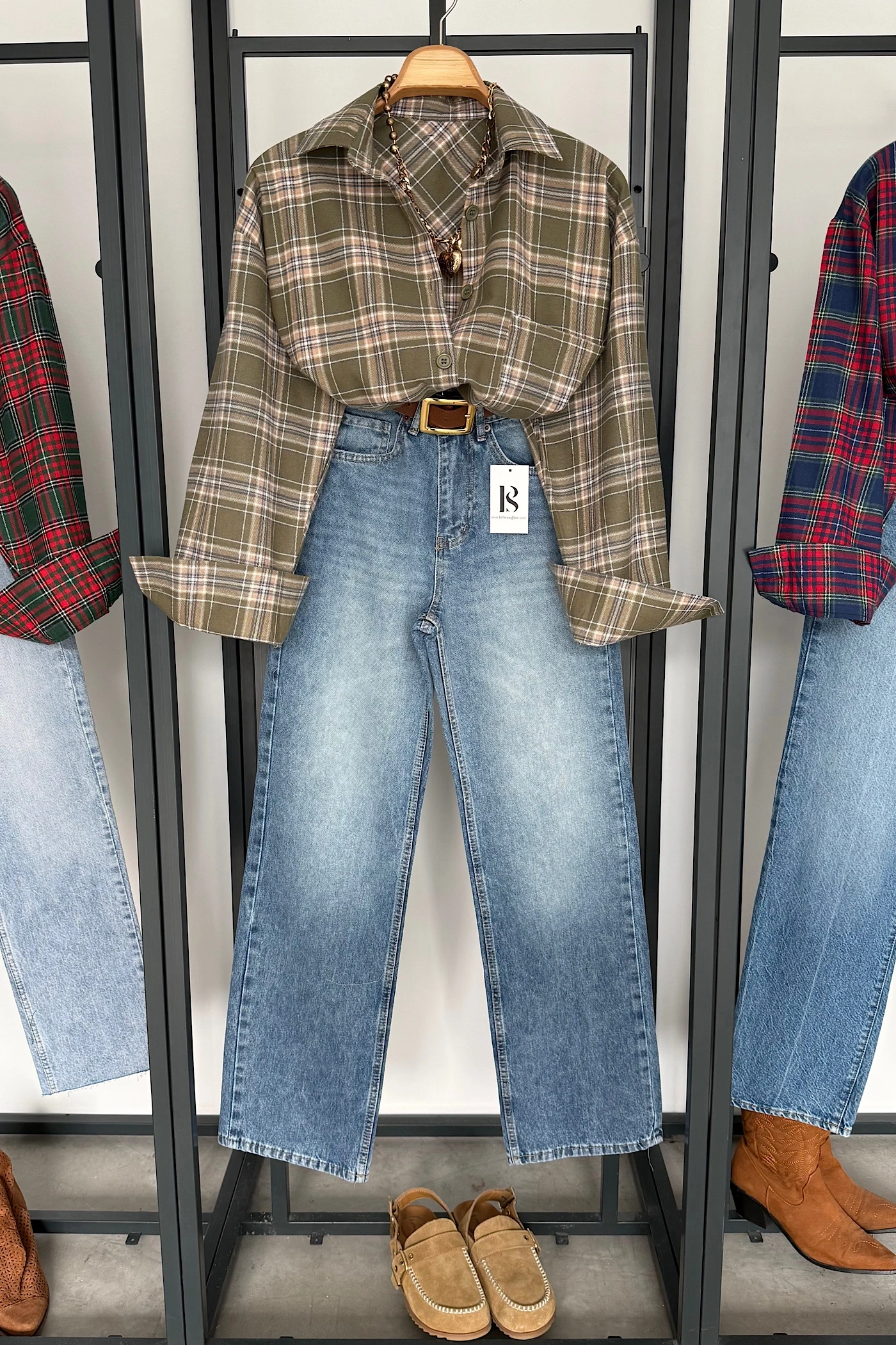 Salaş Oduncu Gömlek Saks-Kırmızı