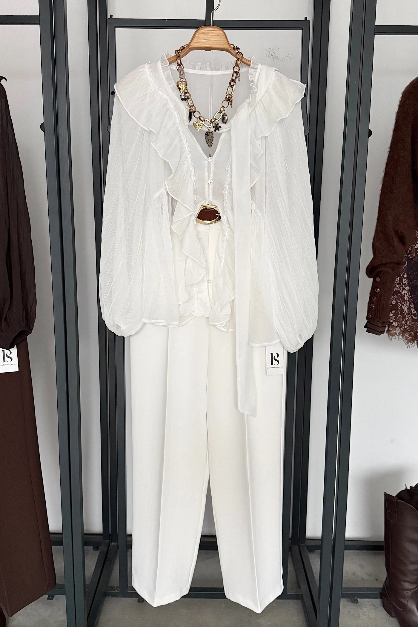 Tasarım Volanlı Bağlama Detaylı Gömlek Beyaz