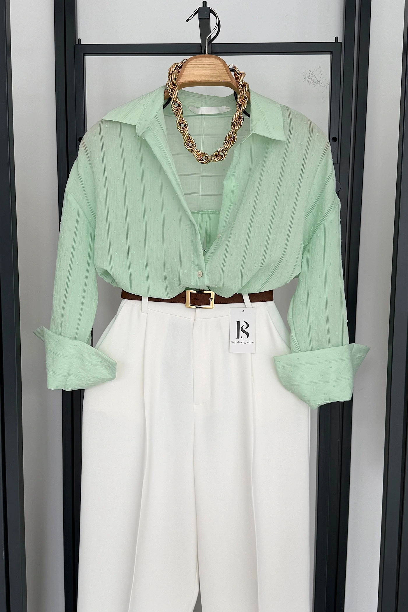 Transparan Çizgili Gömlek Mint