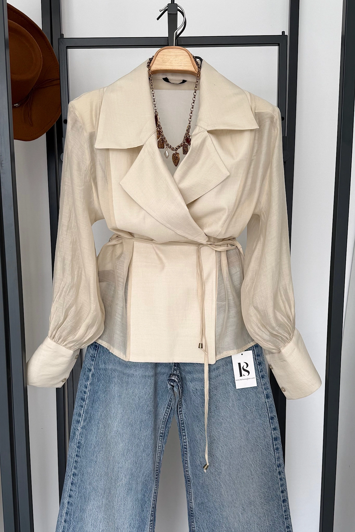 Kuşaklı Modal Gömlek Ekru