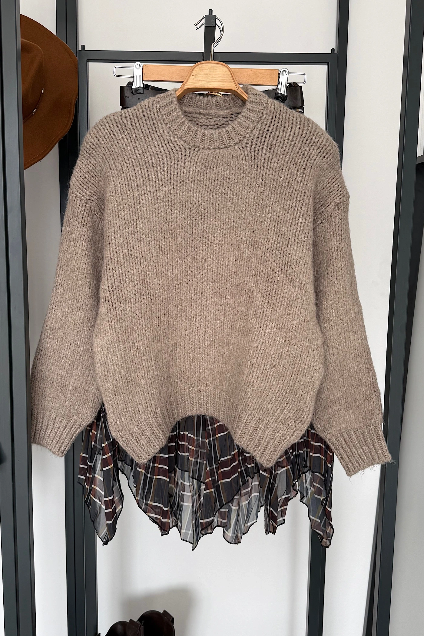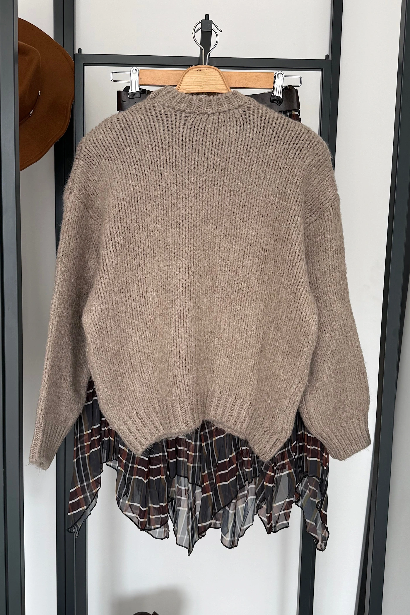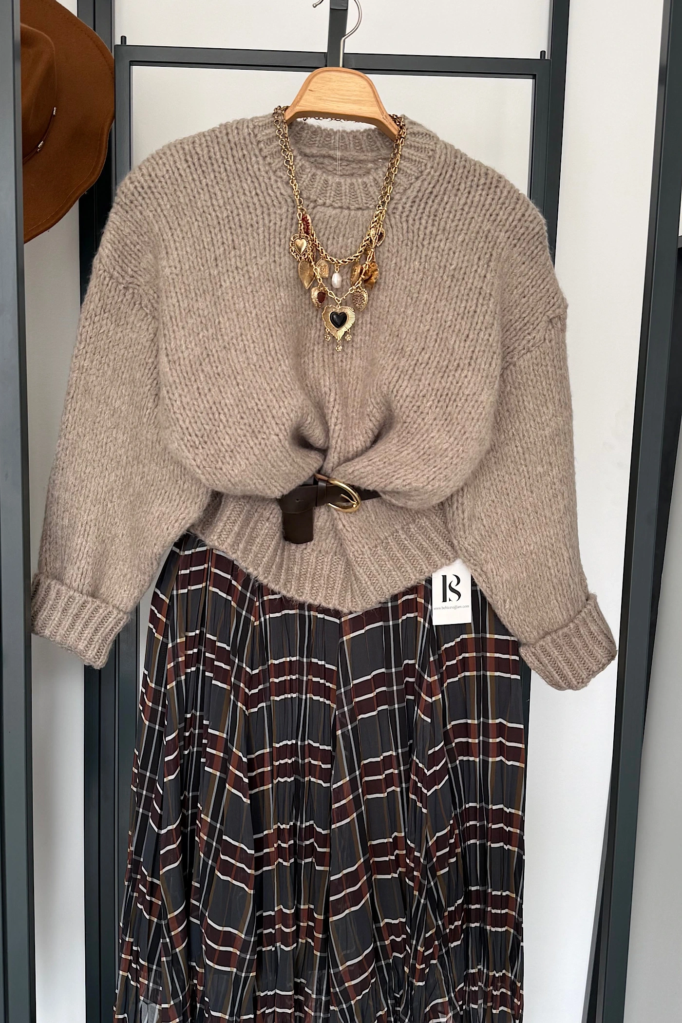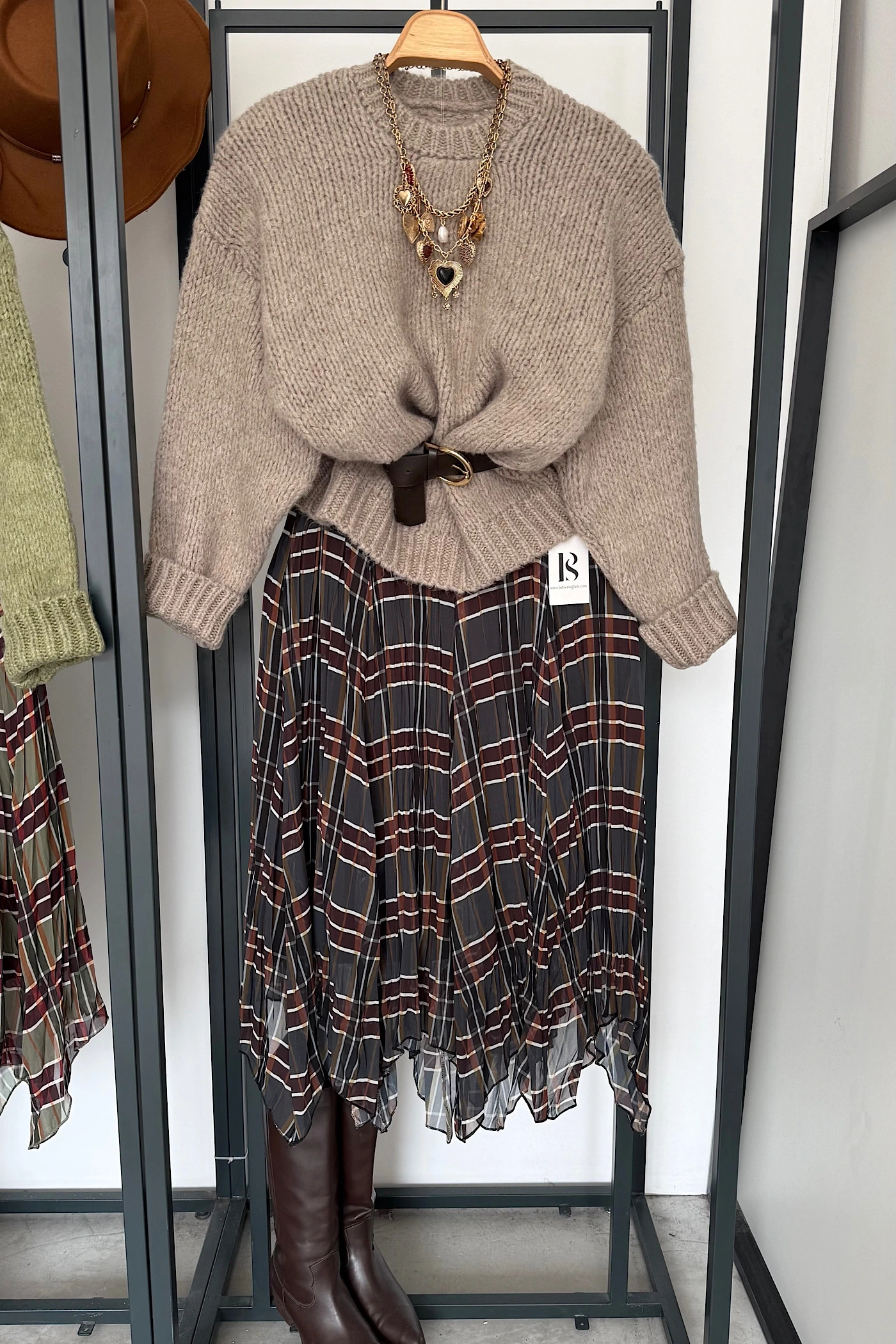 Düğmeli Polo Yaka Kazak Koyu Kahve-Krem