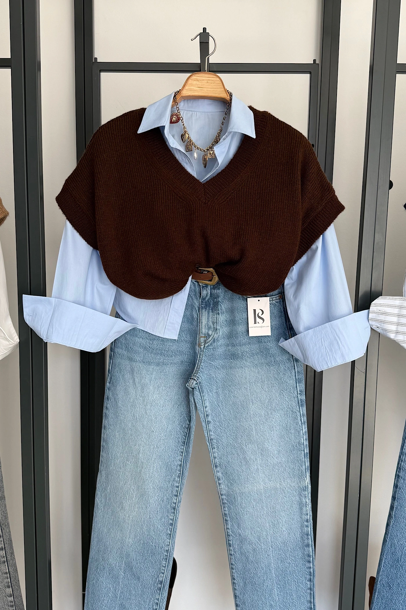 Şardonlu Alpaka Karışımlı Triko Kazak Karamel