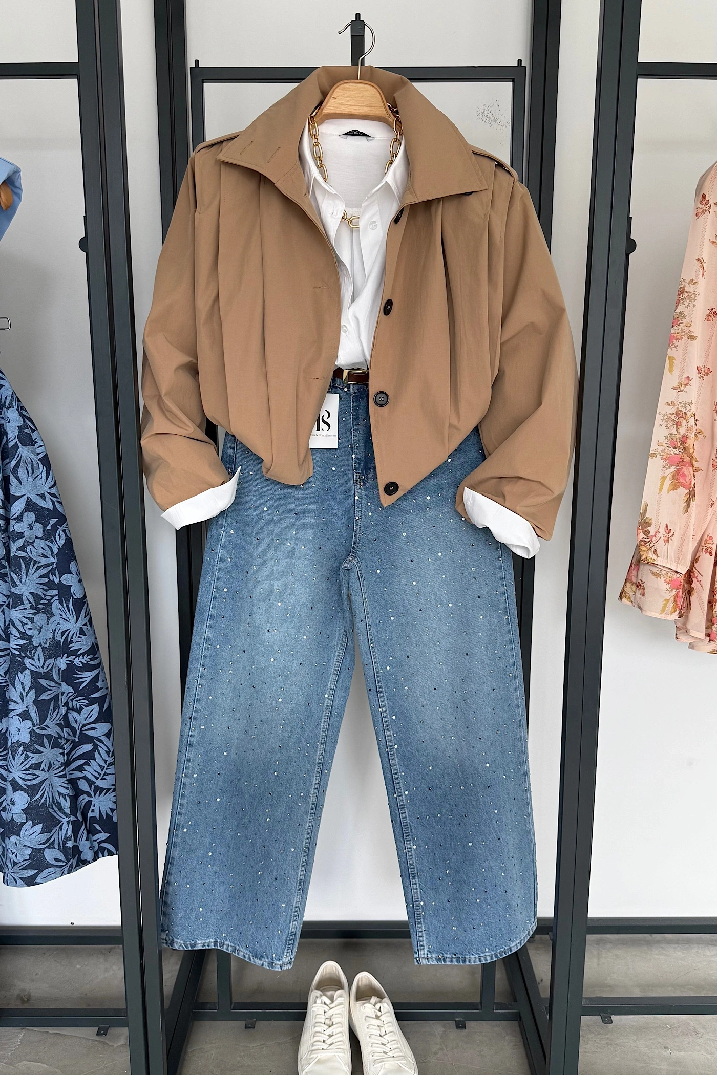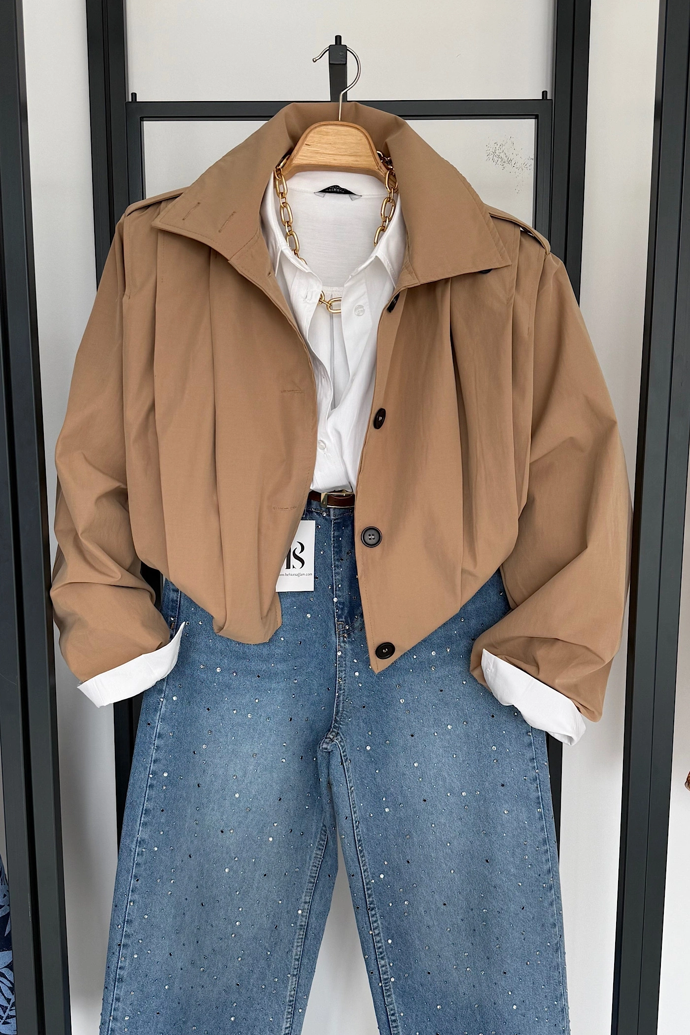 Kadife Detaylı İçi Kürklü Parka Mont Yeşil