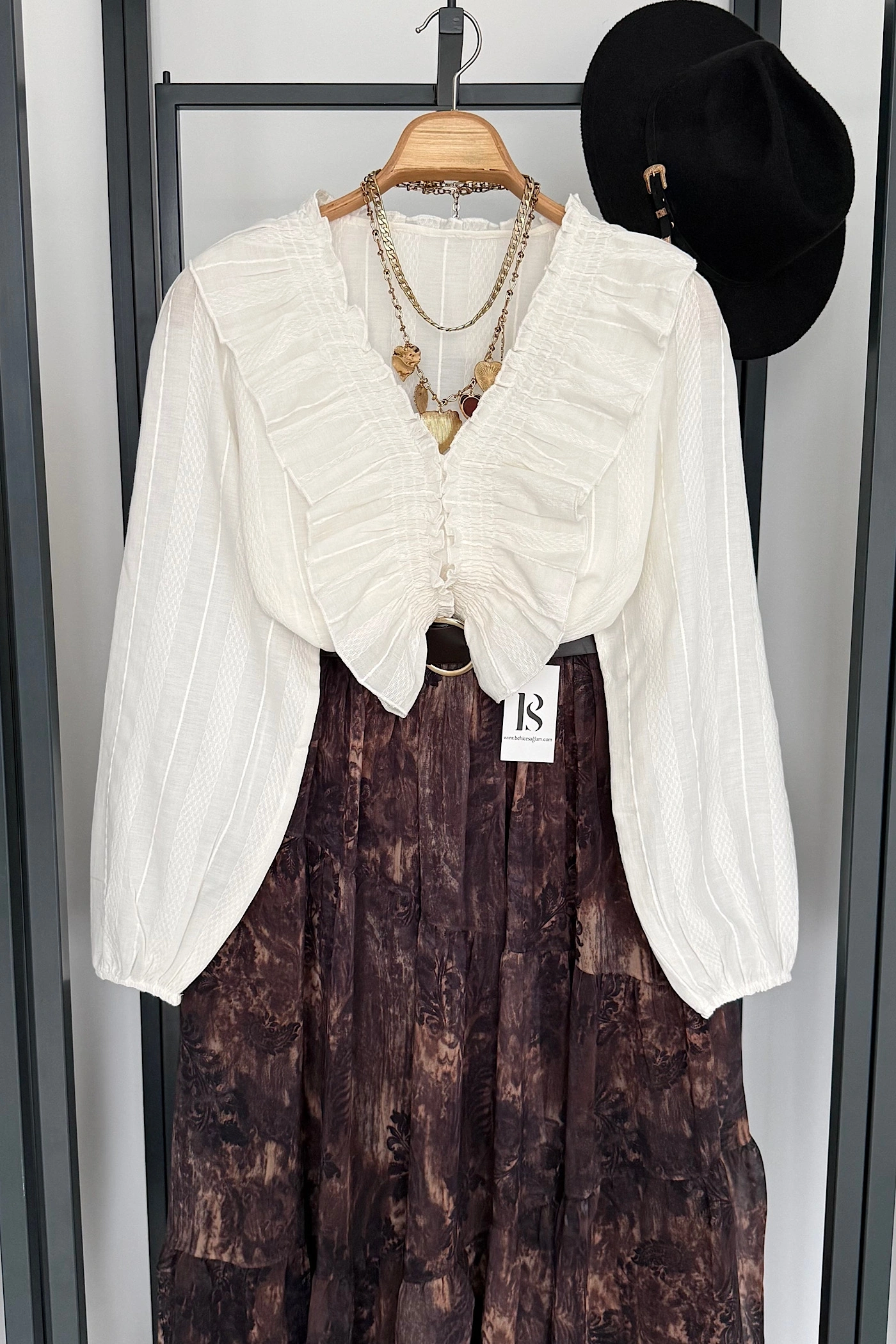 Bs Dantel Detay Fırfırlı Gömlek Beyaz