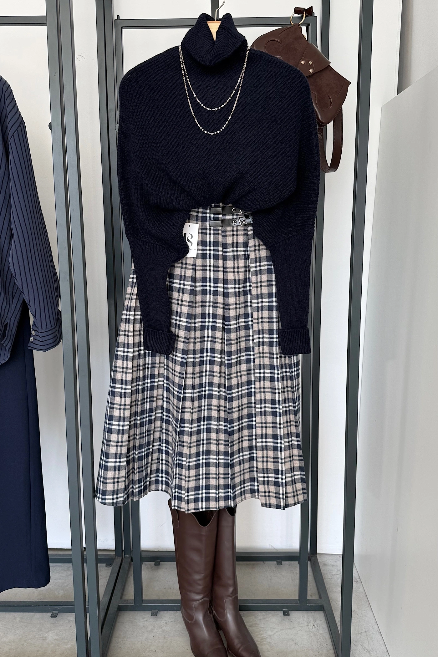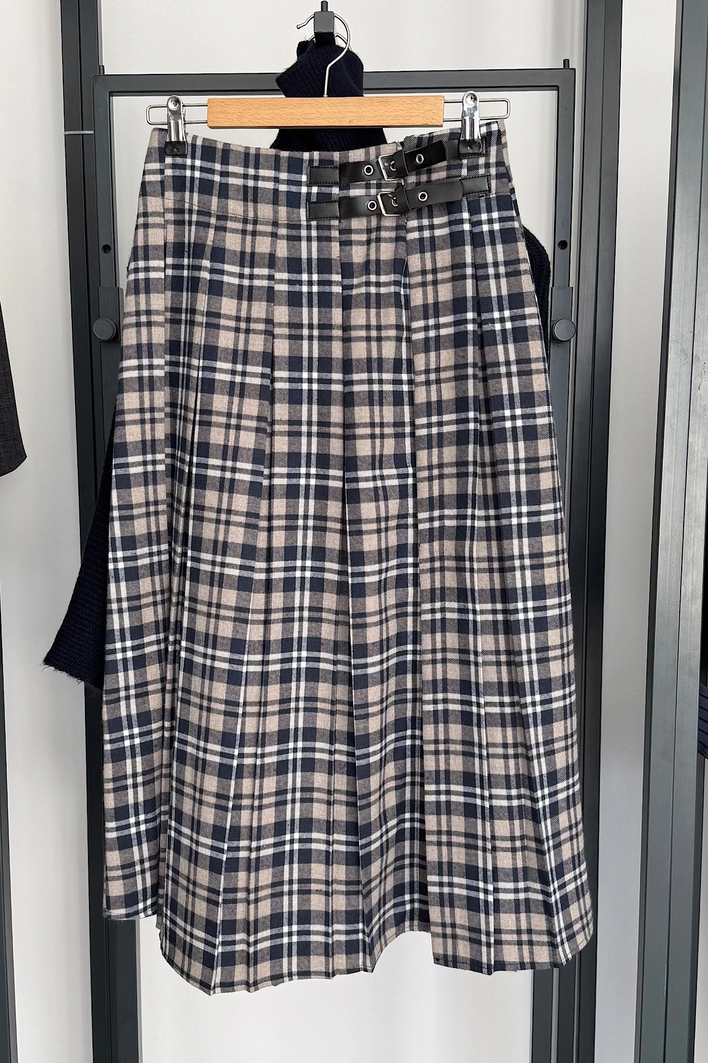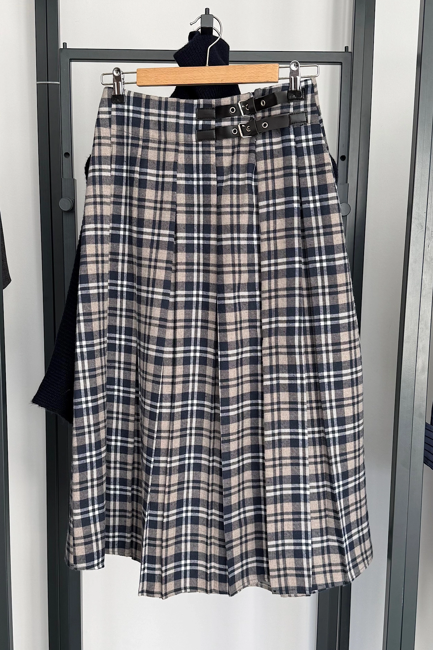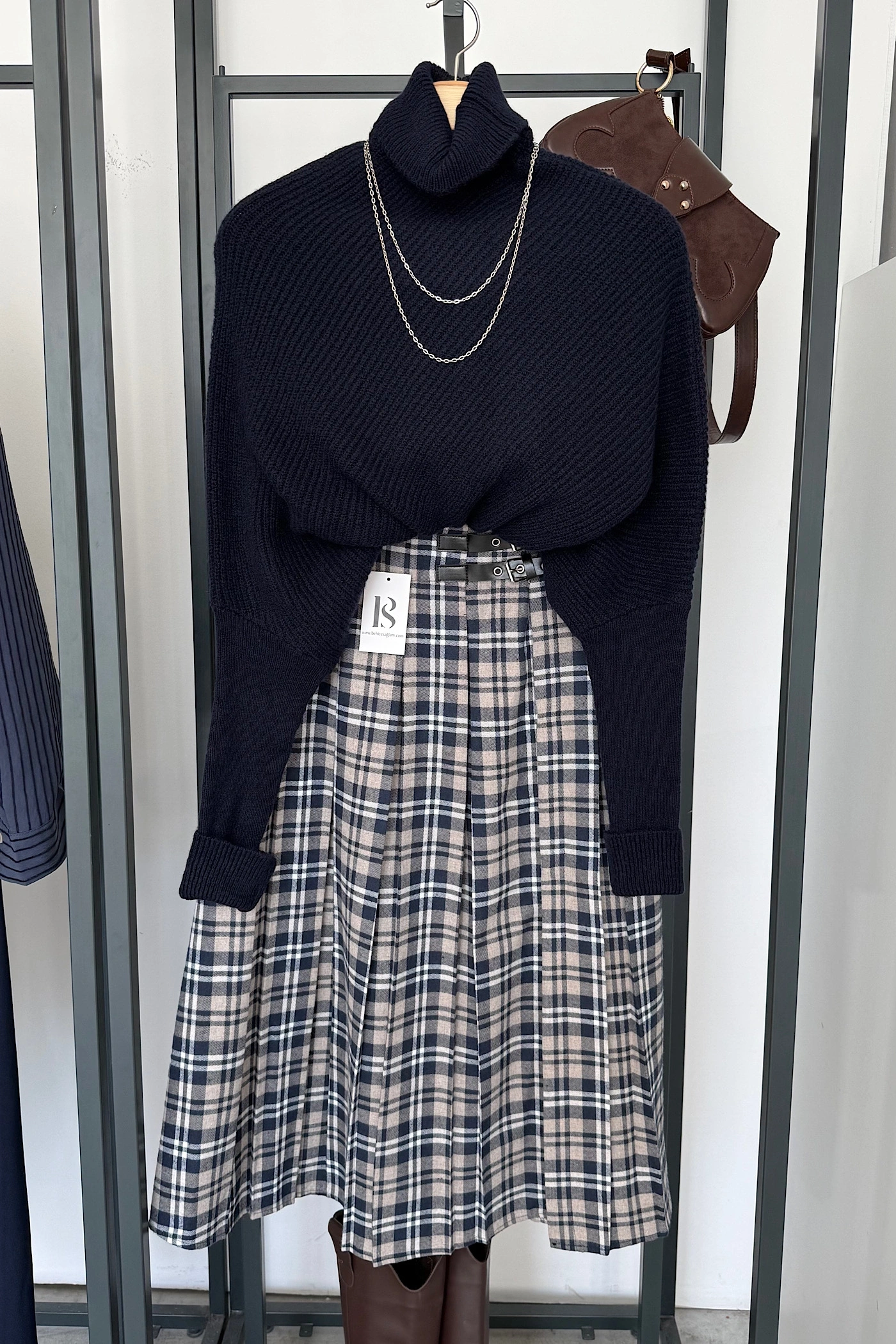 Yandan Yırtmaçlı İskoç Etek Lacivert-Bej