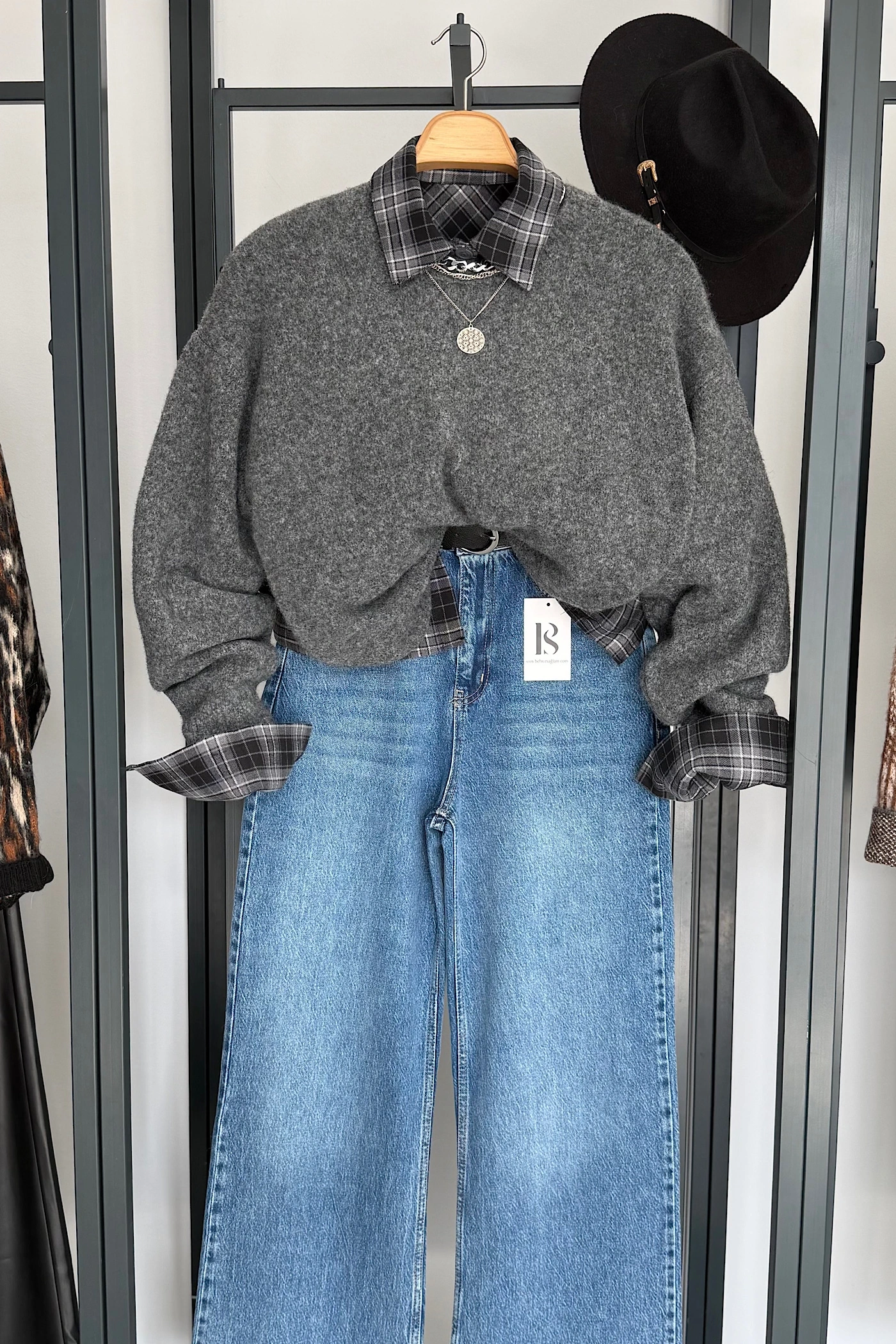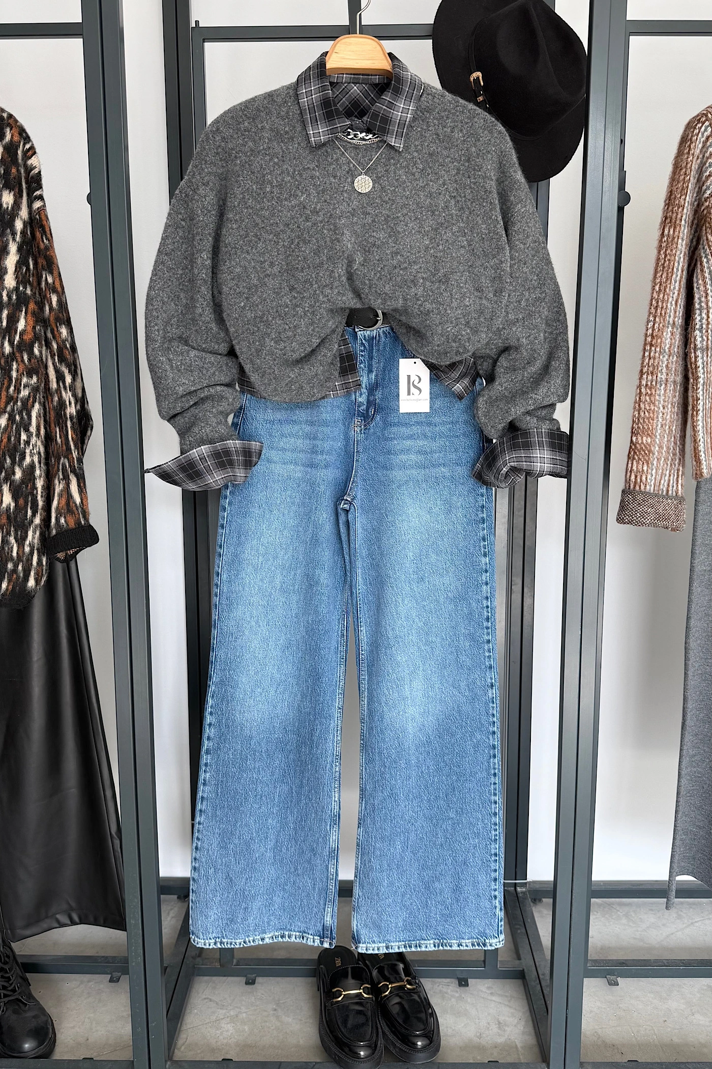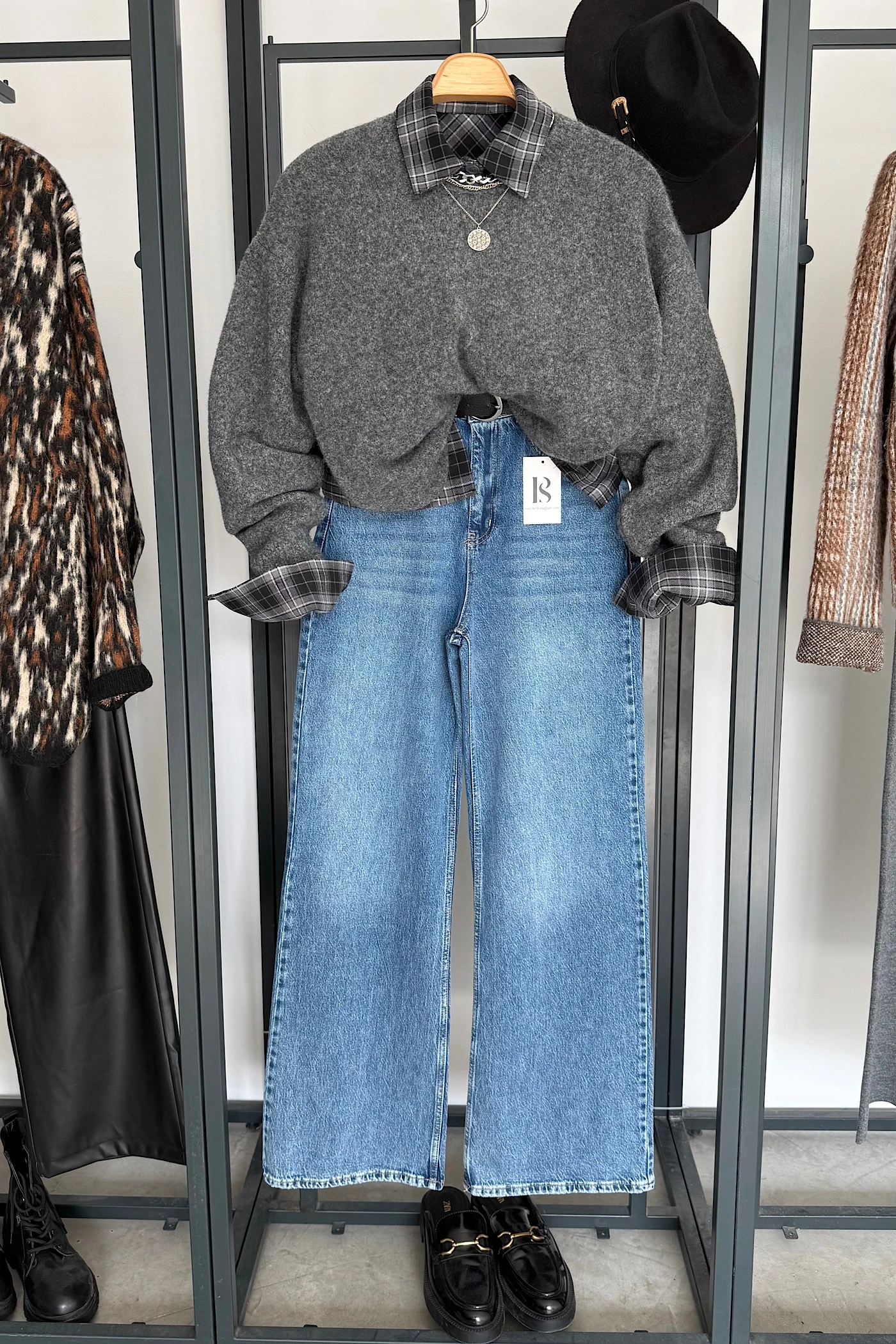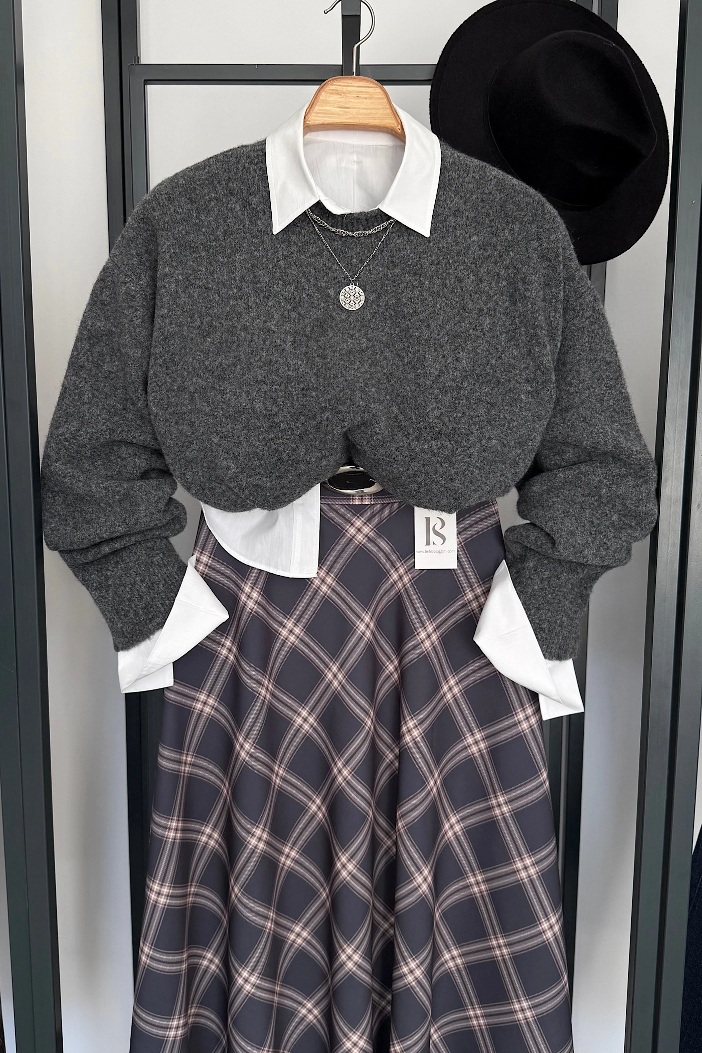 Yumuşak Dokulu Bisiklet Yaka Kazak Antrasit